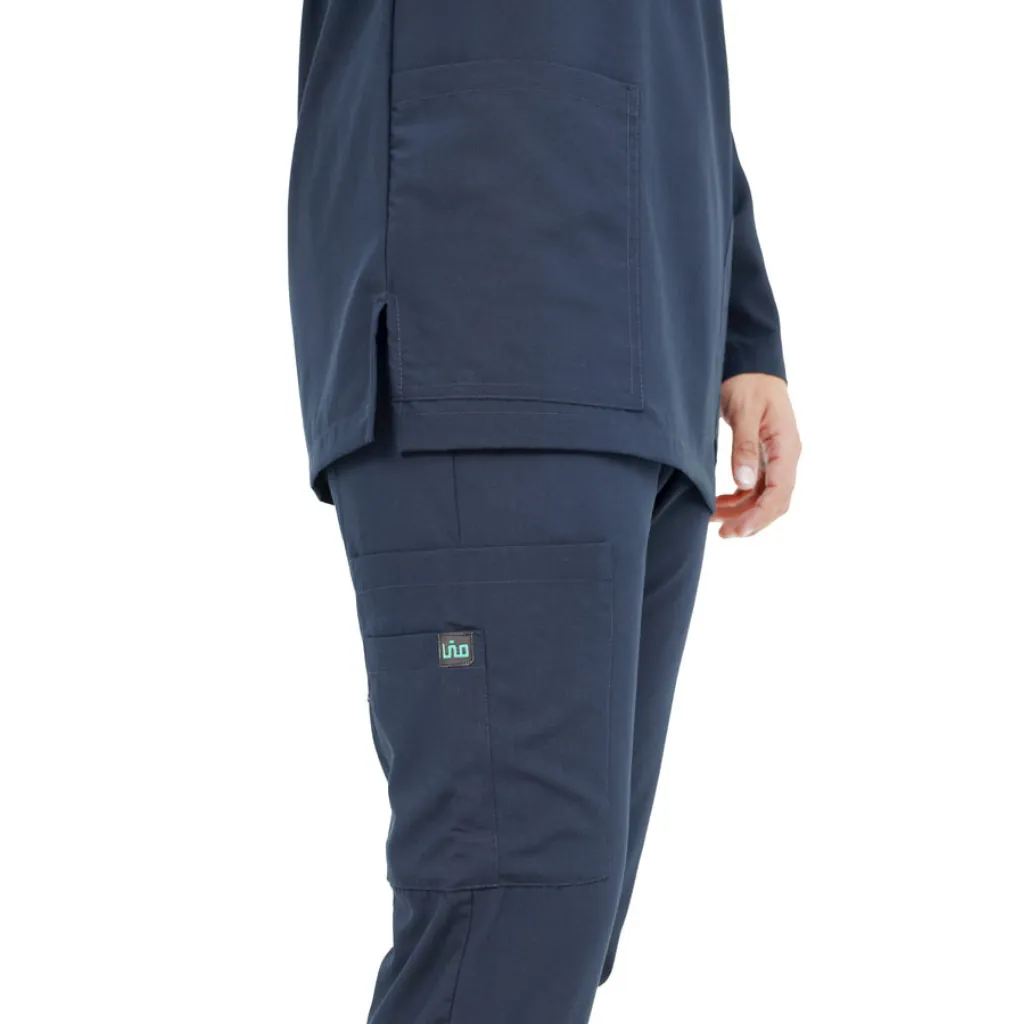 If you're looking for a scrub suit that delivers in performance, appearance, and practicality, this navy blue design is a perfect addition to your work wardrobe.