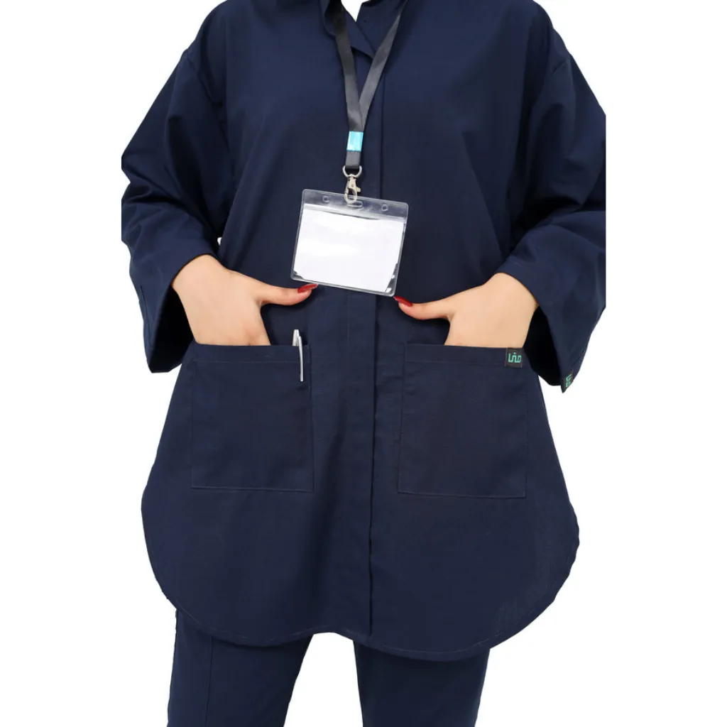 Designed for long hospital shifts, clinics, and lab environments, the frock-style top ensures a relaxed fit and allows easy movement throughout the day. Its full sleeves provide extra coverage, while the deep front pockets offer practical storage for tools like pens, thermometers, gloves, and more.