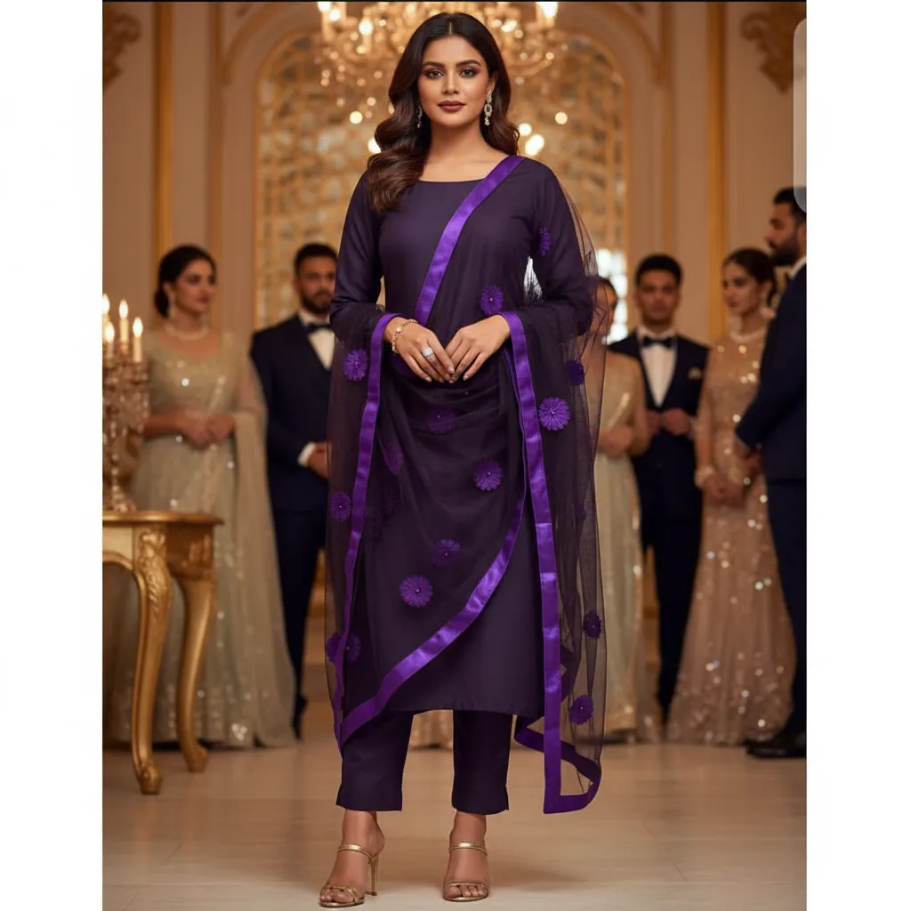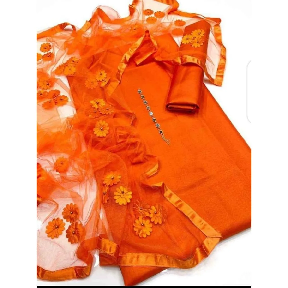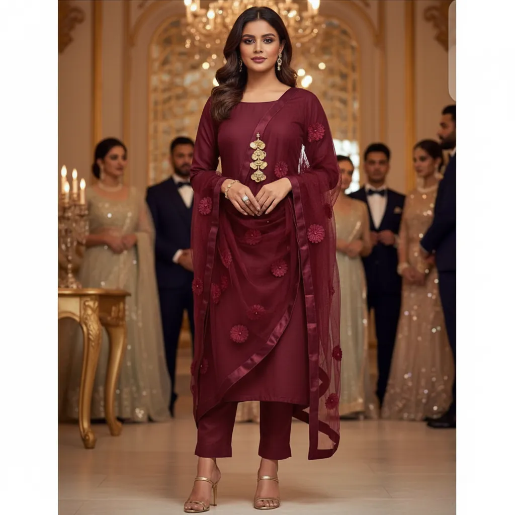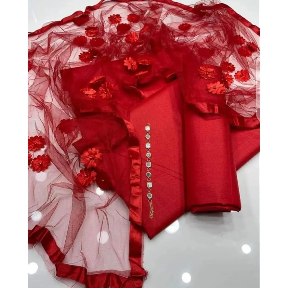 New Arrivals 2025 | Luxury Party Wear 3-Piece Unstitched Kathan Silk Suit for Women | Net Jamawar 3D Floral Dupatta | Premium Festive Collection