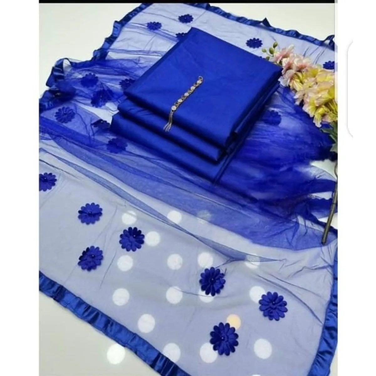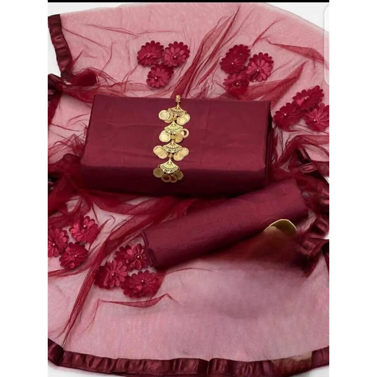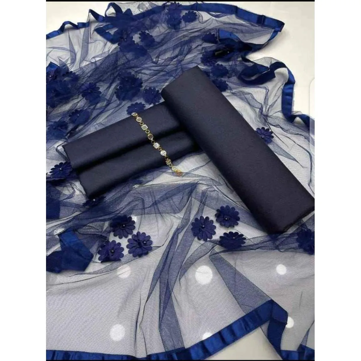 New Arrivals 2025 | Luxury Party Wear 3-Piece Unstitched Kathan Silk Suit for Women | Net Jamawar 3D Floral Dupatta | Premium Festive Collection