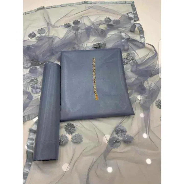 Perfect for weddings, festive gatherings, or evening events, this 3-piece unstitched silk suit is highly recommended for those seeking affordable luxury with a designer appeal.