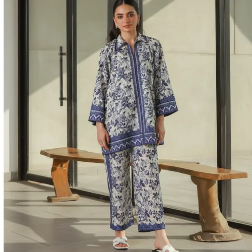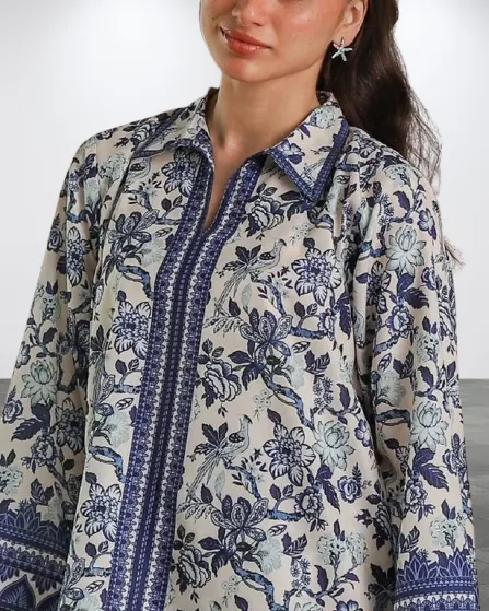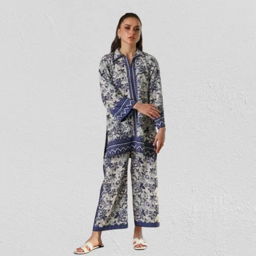 Step into the new season with our Serenity Blue Floral 2-Piece Suit. This beautifully stitched set offers a fresh take on classic style, perfect for your summer wardrobe. The shirt showcases a captivating blue floral print with intricate border details along the front placket, collar, and cuffs.The lightweight and breathable fabric ensures you stay comfortable all day long, while the relaxed fit provides both style and ease of movement. Paired with perfectly coordinated printed trousers, this suit creates a cohesive and polished look. Ideal for casual outings, daytime events, or everyday wear, this ensemble is a must-have for the summer.