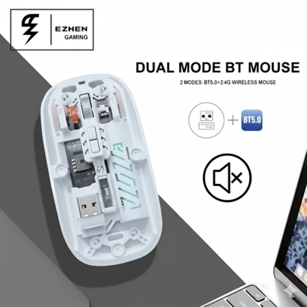 NEW! Transparent Wireless Mouse M-10A | Dual-Mode (2.4G + Bluetooth BT1/BT2) Rechargeable | Silent Click Gaming & Office Mouse | 2400 DPI Multi-Device Connection
