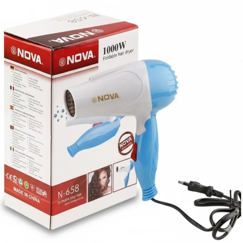 The NOVA N-658 Foldable Hair Dryer is the ultimate choice for those who need reliable styling power in a lightweight, compact package. With a strong 1000 Watt performance, it provides sufficient airflow and heat to quickly dry your hair, whether you're at home or on the go.