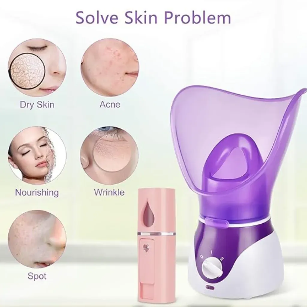 This facial steamer improves skin hydration, boosts blood circulation, and helps reduce acne, pimples, and dull skin. It is not only useful for beauty care but can also be used for cold, cough, and sinus relief.