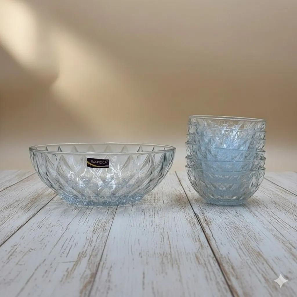 The set is meticulously designed for versatility: the large bowl serves as an ideal centerpiece for family-sized portions of fruit salads, trifles, or snacks, while the six smaller bowls are perfectly sized for individual servings of ice cream, custard, or appetizers. Durable enough for daily use yet elegant enough for formal celebrations, this set is a must-have for every modern kitchen.
