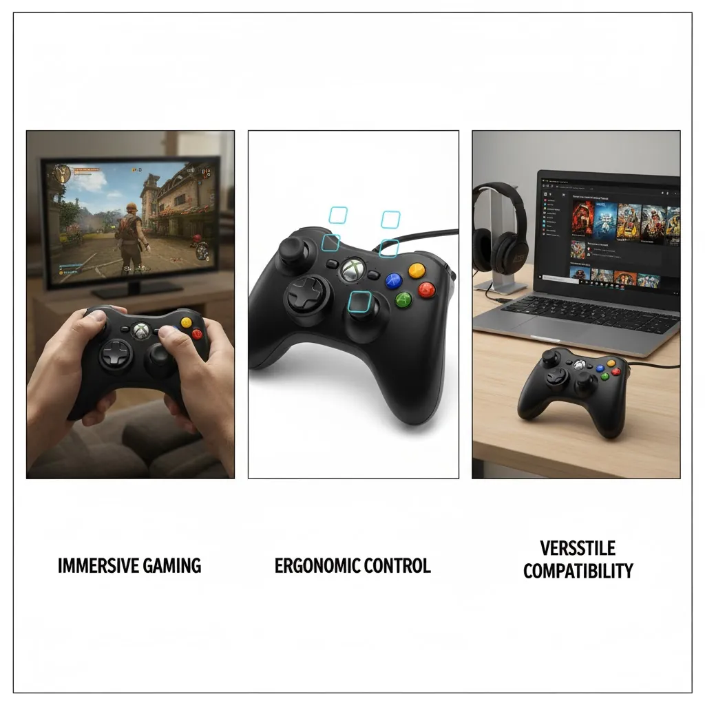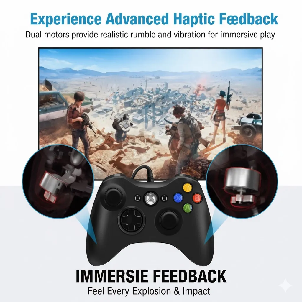 Experience a consistent and universal gaming experience across Microsoft's platforms with the Xbox 360 Wired Controller for Windows and Xbox 360 Console. This essential gamepad features a comfortable, compact, and ergonomic design, allowing you to play for hours in total comfort. With an integrated USB-A connector and a generous cable length (typically 9 ft / 2.7m), you get the performance of a wired connection with freedom of movement.
