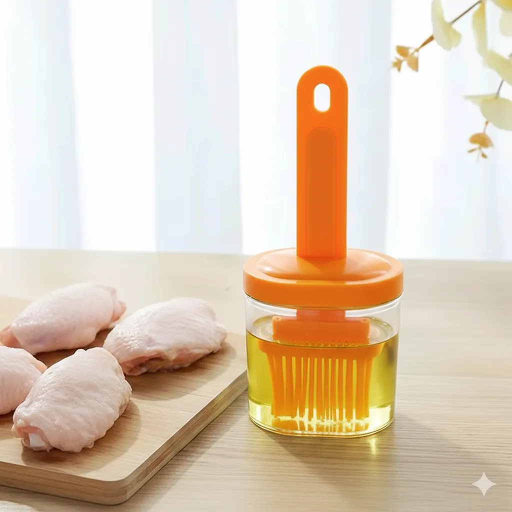 Upgrade your cooking experience with this multi-functional Oil Bottle with Silicone Brush. Designed for home cooks and professional chefs, this bottle allows you to apply oil evenly on baking trays, grills, pans, and pastries.