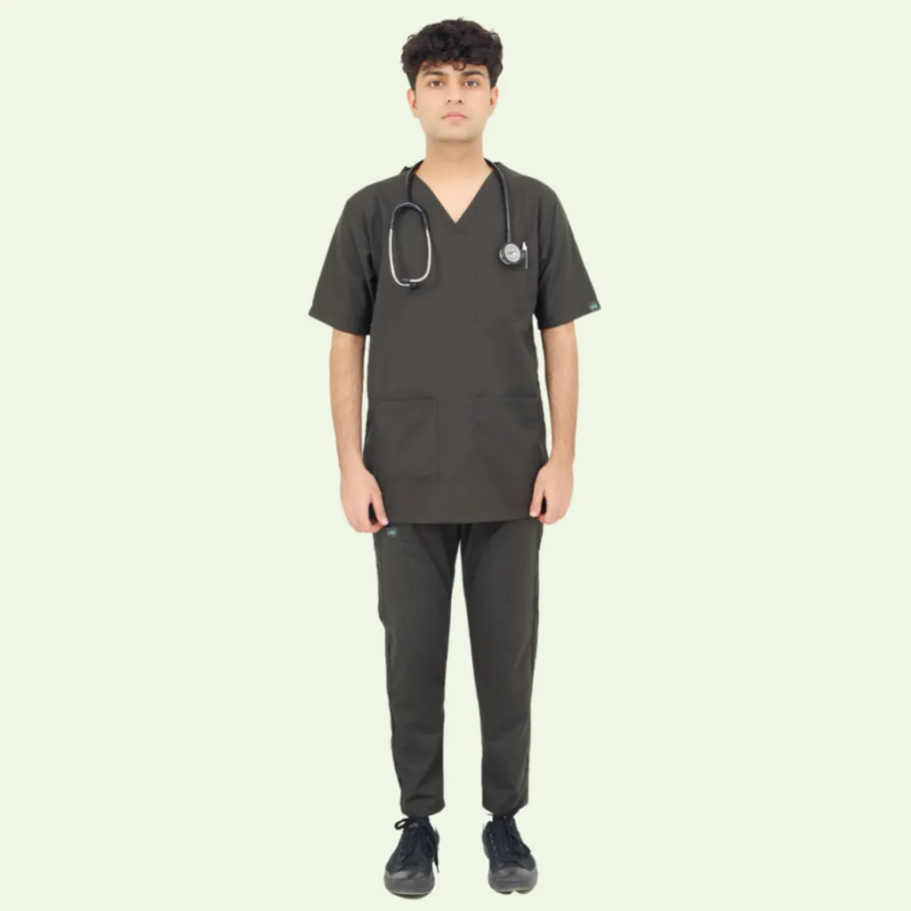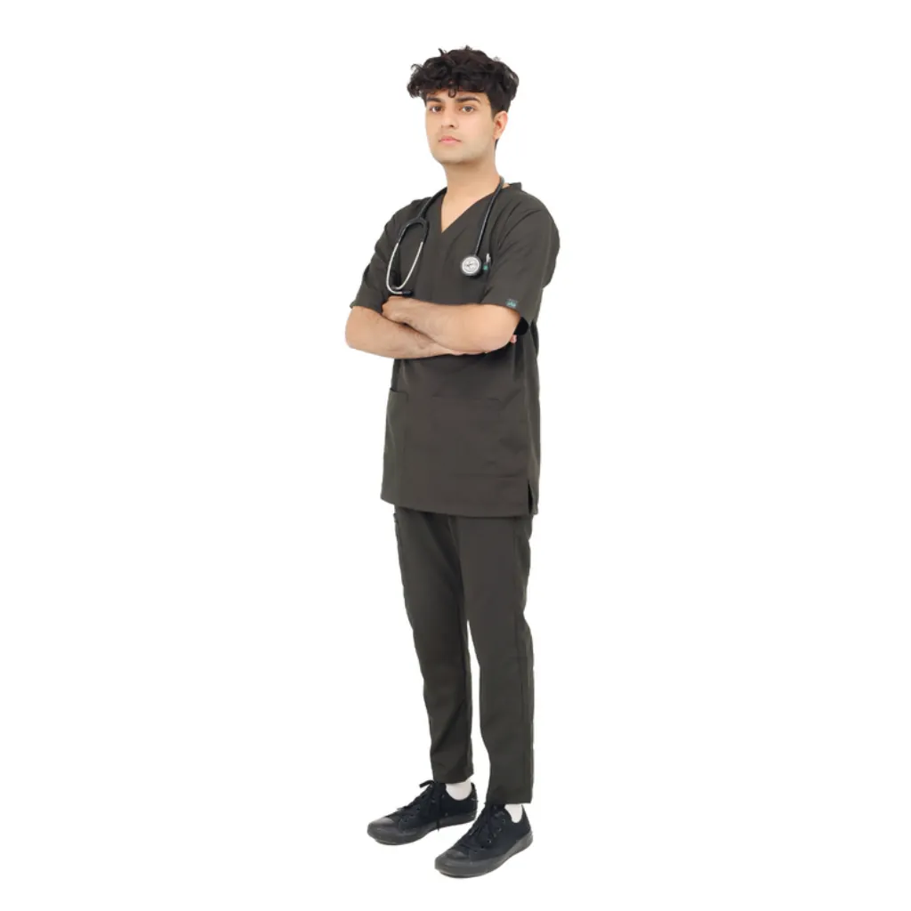 Made from soft, non-transparent, and durable fabric, this scrub suit is ideal for use in hospitals, clinics, labs, or even classrooms. The Olive Green color gives it a modern, earthy vibe while maintaining a composed and hygienic appearance.