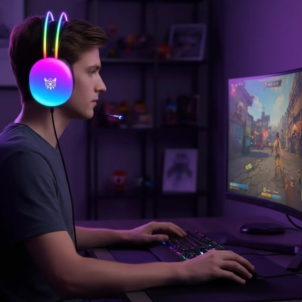 2. Dynamic RGB lighting headphone: Breathing gradient lighting effect, passionate.