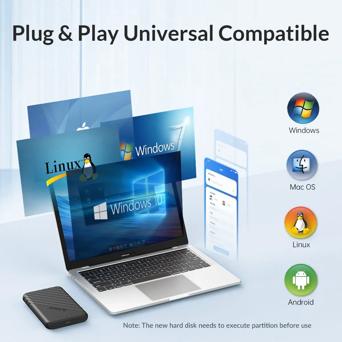 The ORICO 25PW1-U3 is a high-speed, portable, and durable 2.5-inch hard drive enclosure designed for users who need efficient data transfer and secure storage. With its USB 3.0 Micro-B interface and UASP support, it delivers blazing-fast transfer speeds up to 5Gbps, making it ideal for data backup, file transfer, and drive recovery.