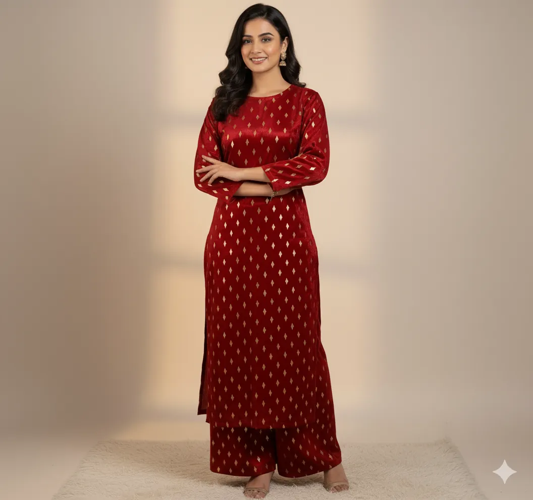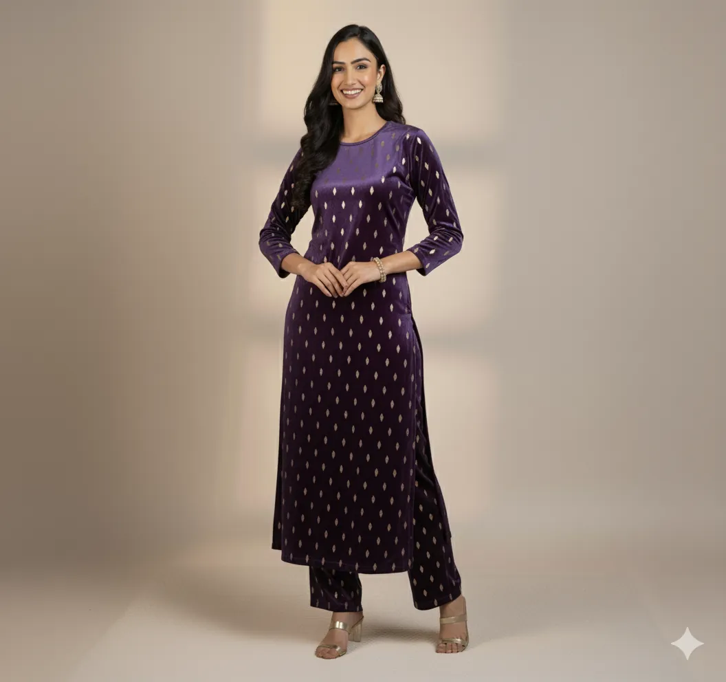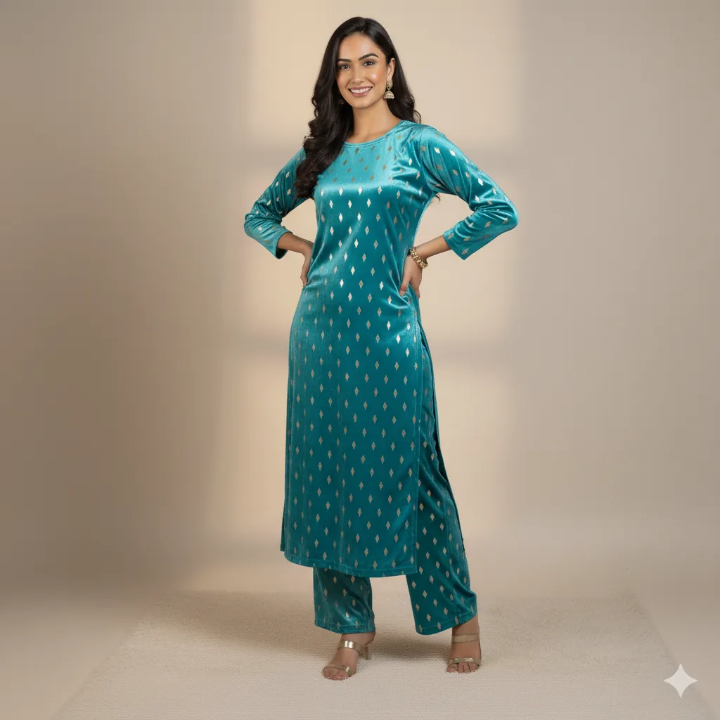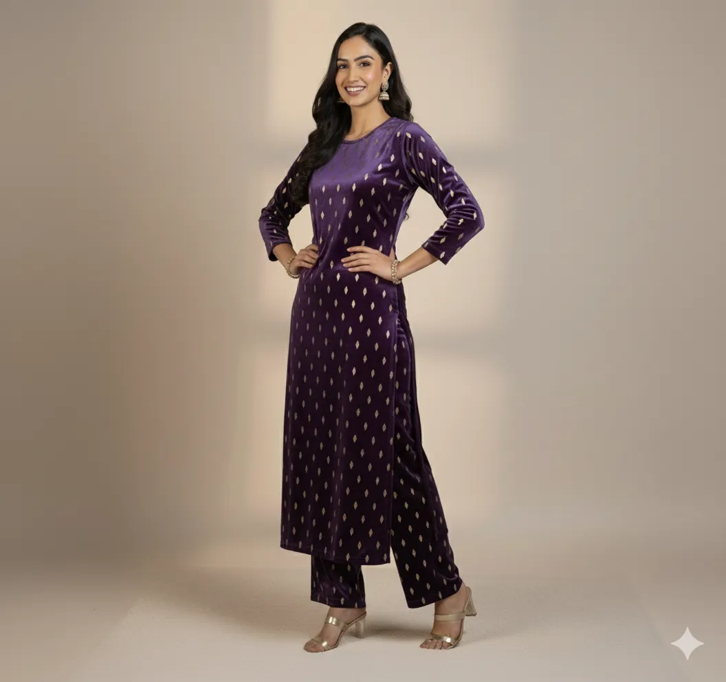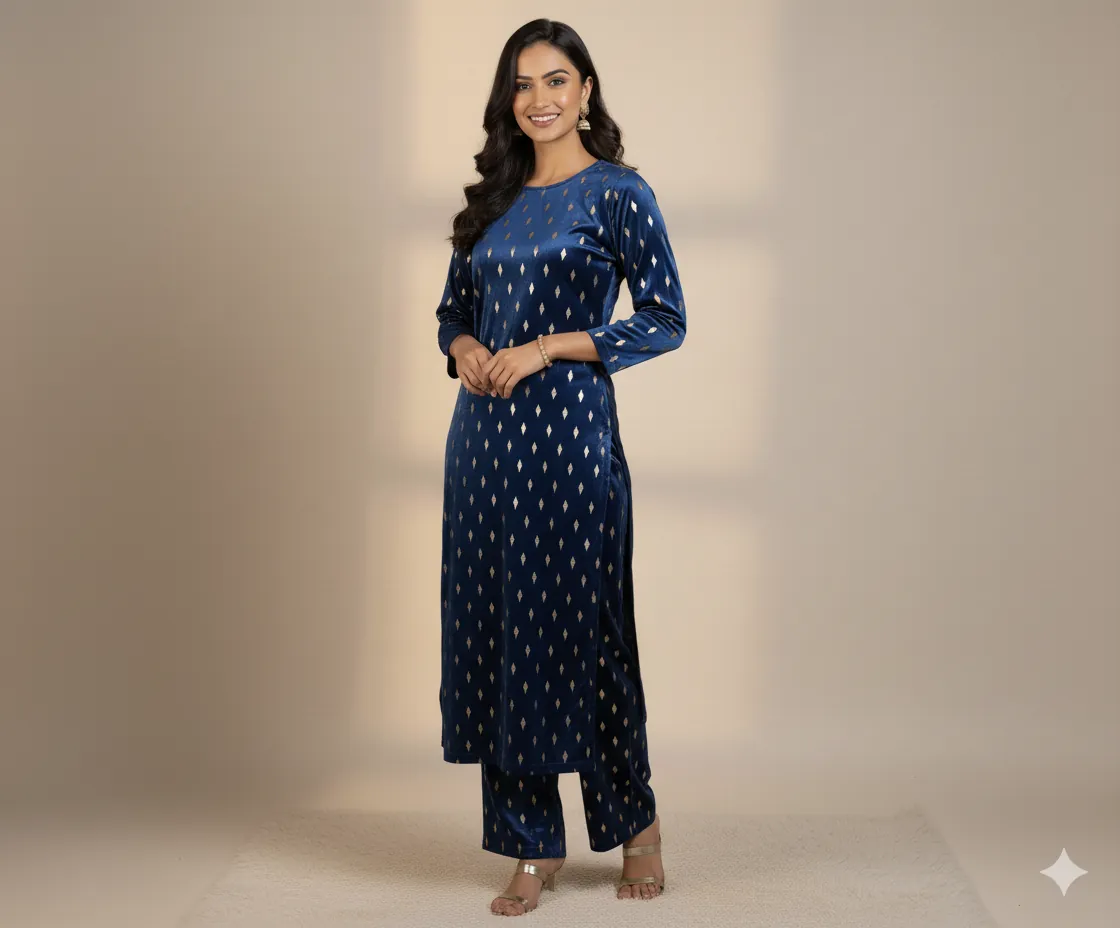 Outclass Black Velvet 2-Piece Suit | Fancy 3-Yard Unstitched Fabric with 58" Arazz. Elevate your wardrobe with the unparalleled elegance of this Black Fancy Velvet 2-Piece Suit by Outfitters. Designed for those who demand outclass quality with absolutely no compromise, this unstitched ensemble is a must-have for any festive or formal occasion. The rich, soft velvet fabric drapes beautifully and features a shimmering foil print, capturing light perfectly. Each suit comes with a 3-yard standard cutting, giving you ample material to tailor a comfortable and perfectly sized outfit. The 58-inch arazz (width) makes it ideal for designing broad, flowing silhouettes like palazzo pants or wide kurtas. Although this piece is a classic black, our full collection is available in a magnificent volume of different colors to suit every taste. Shop now for a luxurious suit that offers both supreme comfort and lasting quality.