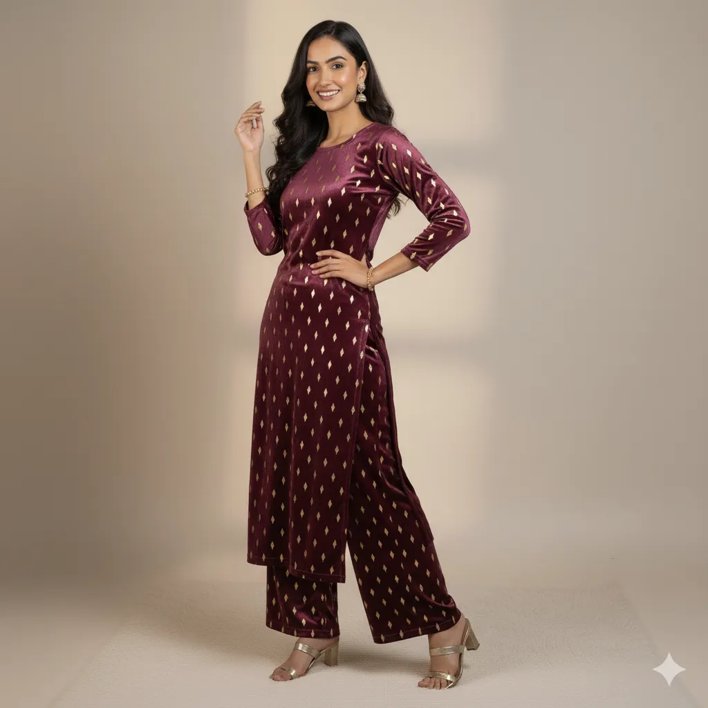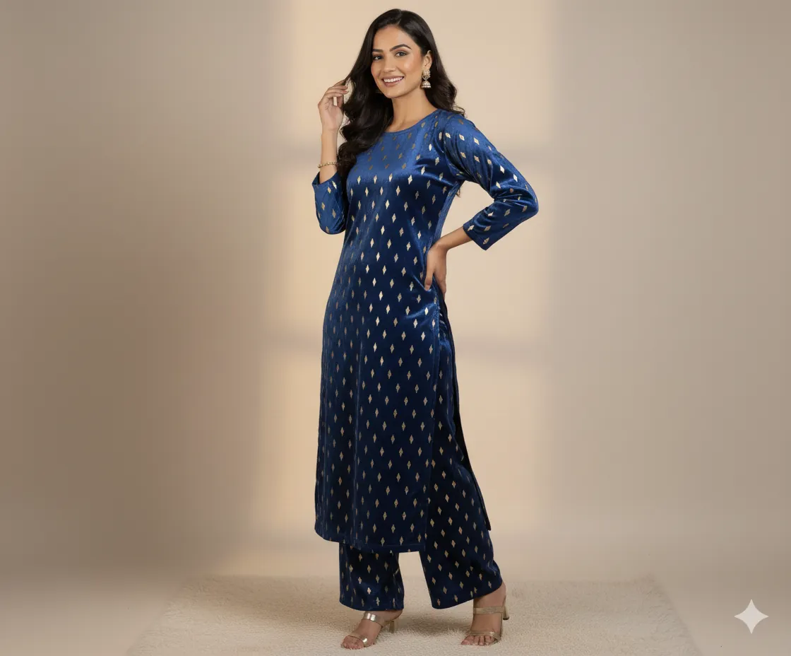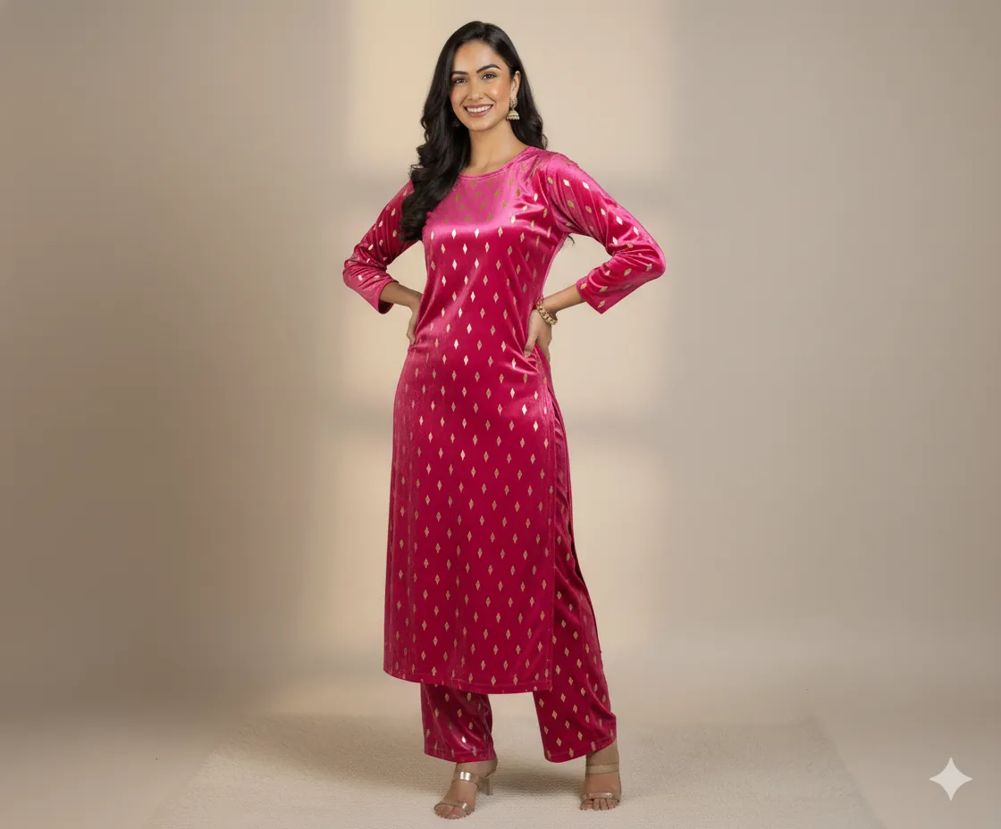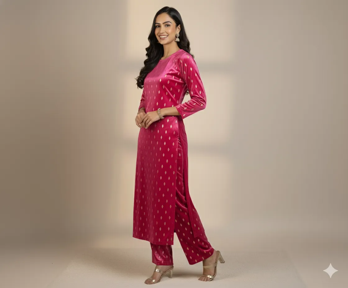 Outclass Black Velvet 2-Piece Suit | Fancy 3-Yard Unstitched Fabric with 58" Arazz. Elevate your wardrobe with the unparalleled elegance of this Black Fancy Velvet 2-Piece Suit by Outfitters. Designed for those who demand outclass quality with absolutely no compromise, this unstitched ensemble is a must-have for any festive or formal occasion. The rich, soft velvet fabric drapes beautifully and features a shimmering foil print, capturing light perfectly. Each suit comes with a 3-yard standard cutting, giving you ample material to tailor a comfortable and perfectly sized outfit. The 58-inch arazz (width) makes it ideal for designing broad, flowing silhouettes like palazzo pants or wide kurtas. Although this piece is a classic black, our full collection is available in a magnificent volume of different colors to suit every taste. Shop now for a luxurious suit that offers both supreme comfort and lasting quality.