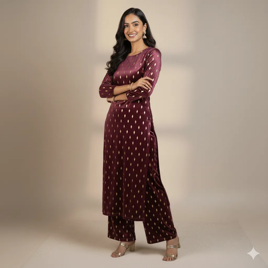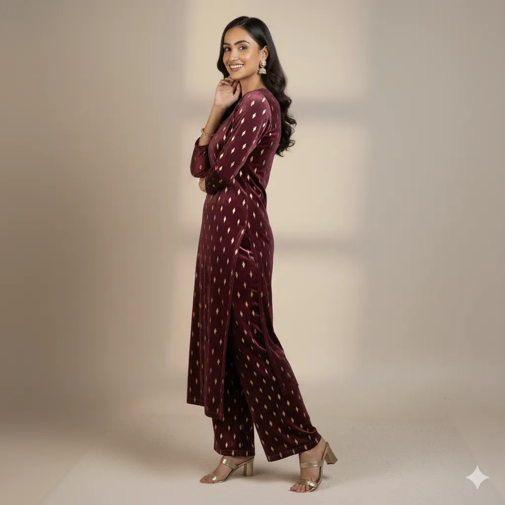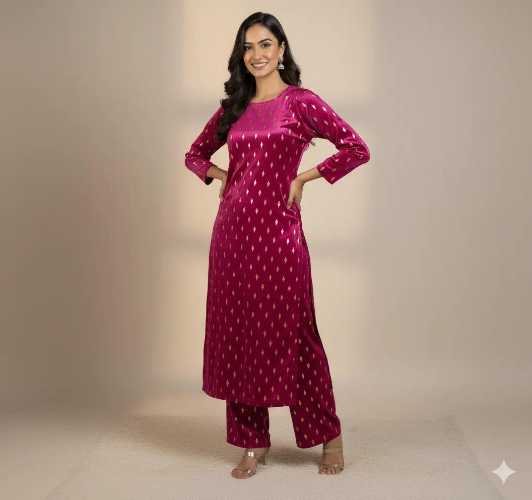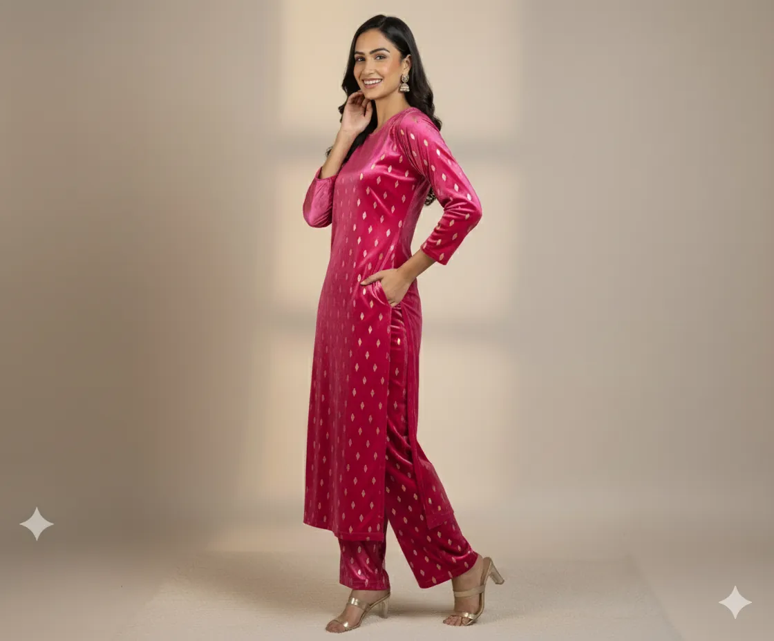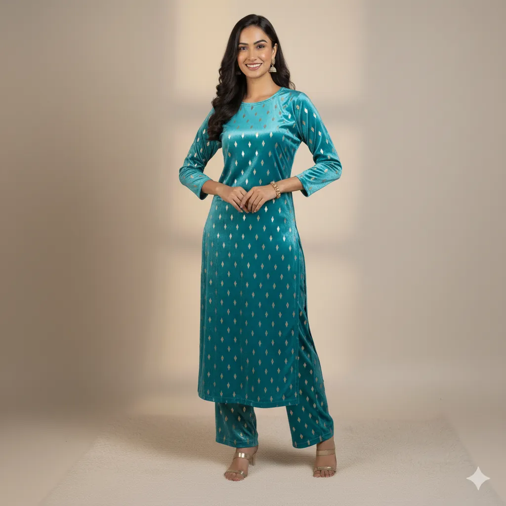 Outclass Black Velvet 2-Piece Suit | Fancy 3-Yard Unstitched Fabric with 58" Arazz. Elevate your wardrobe with the unparalleled elegance of this Black Fancy Velvet 2-Piece Suit by Outfitters. Designed for those who demand outclass quality with absolutely no compromise, this unstitched ensemble is a must-have for any festive or formal occasion. The rich, soft velvet fabric drapes beautifully and features a shimmering foil print, capturing light perfectly. Each suit comes with a 3-yard standard cutting, giving you ample material to tailor a comfortable and perfectly sized outfit. The 58-inch arazz (width) makes it ideal for designing broad, flowing silhouettes like palazzo pants or wide kurtas. Although this piece is a classic black, our full collection is available in a magnificent volume of different colors to suit every taste. Shop now for a luxurious suit that offers both supreme comfort and lasting quality.