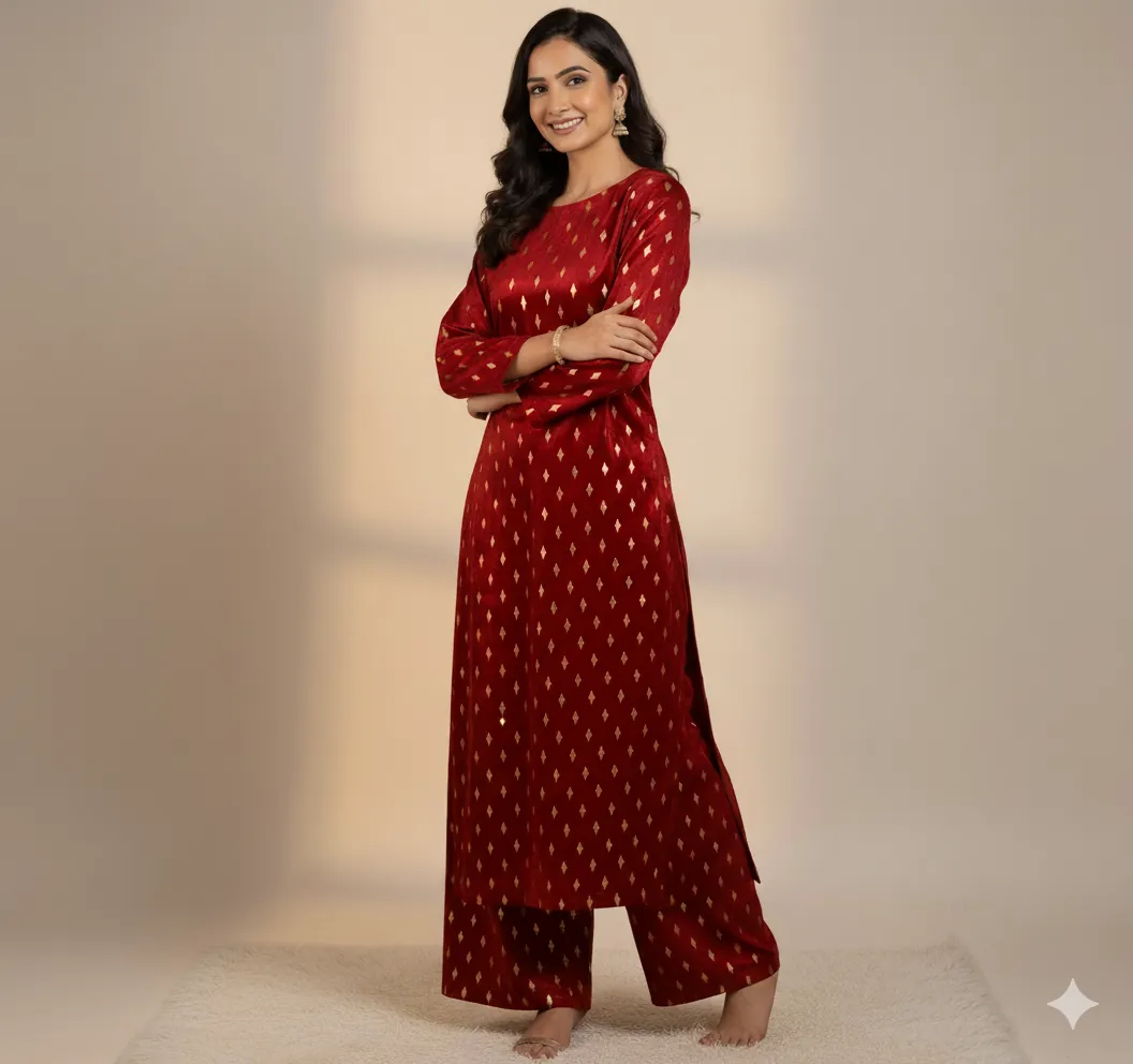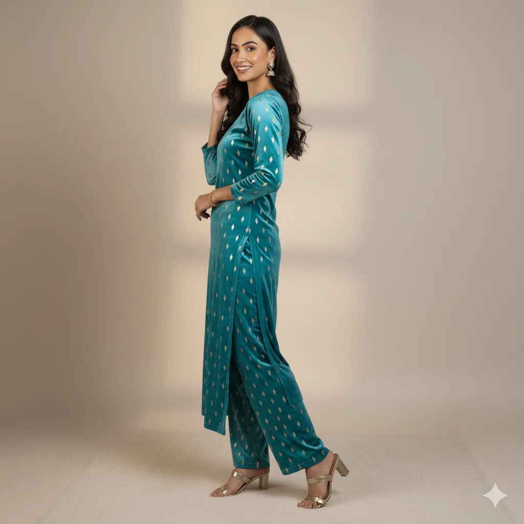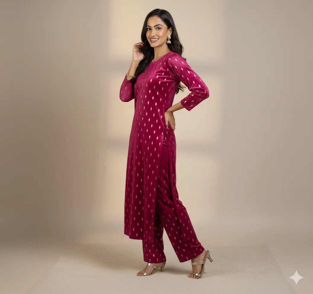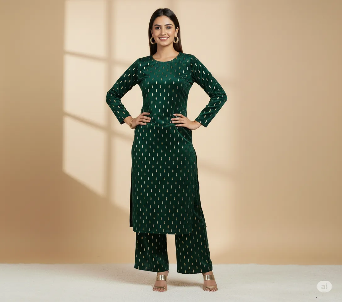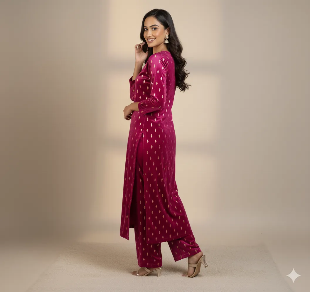 Outclass Black Velvet 2-Piece Suit | Fancy 3-Yard Unstitched Fabric with 58" Arazz. Elevate your wardrobe with the unparalleled elegance of this Black Fancy Velvet 2-Piece Suit by Outfitters. Designed for those who demand outclass quality with absolutely no compromise, this unstitched ensemble is a must-have for any festive or formal occasion. The rich, soft velvet fabric drapes beautifully and features a shimmering foil print, capturing light perfectly. Each suit comes with a 3-yard standard cutting, giving you ample material to tailor a comfortable and perfectly sized outfit. The 58-inch arazz (width) makes it ideal for designing broad, flowing silhouettes like palazzo pants or wide kurtas. Although this piece is a classic black, our full collection is available in a magnificent volume of different colors to suit every taste. Shop now for a luxurious suit that offers both supreme comfort and lasting quality.
