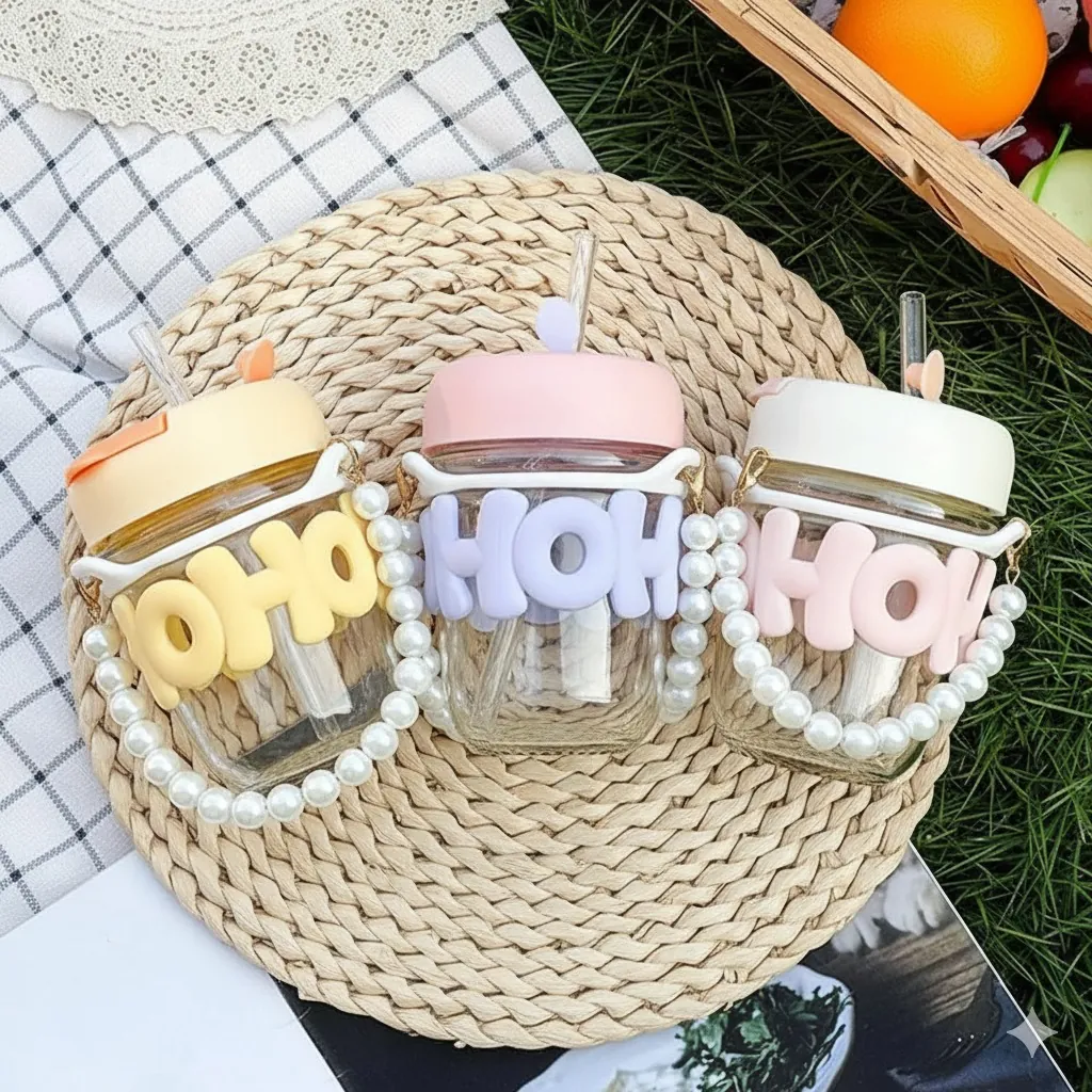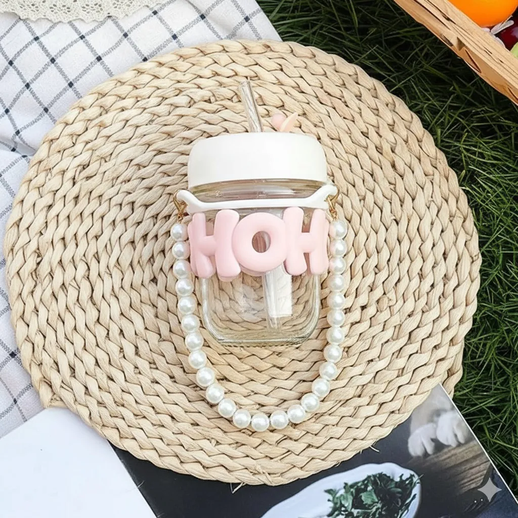 The Pearl Glass Sipper is the perfect combination of style and sustainability. Made from high-quality transparent glass with a pearl-like finish, this tumbler comes with a matching reusable glass straw, giving your drink a luxurious look and feel.