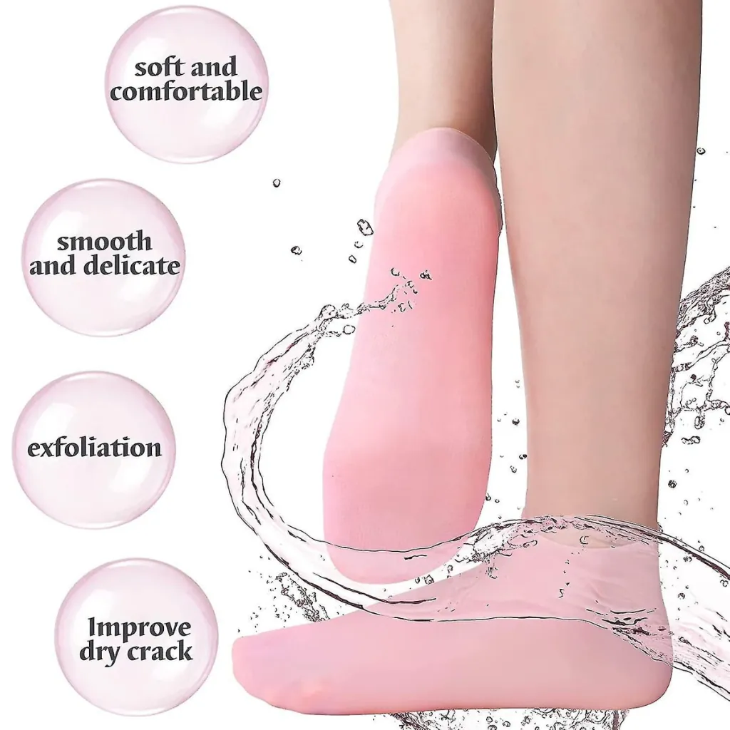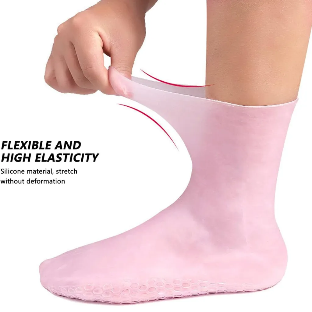Indulge in luxurious foot care with our moisturizing gel-lined spa socks. Designed to provide intensive hydration, these comfortable socks are infused with a special gel that works to soften and repair dry, rough, and cracked heels. Simply wear them for 20-30 minutes at home to transform your feet, leaving them feeling silky smooth and refreshed. They are reusable and washable, making them a cost-effective and convenient solution for a home pedicure. Say goodbye to uncomfortable cracked skin and hello to beautiful, healthy-looking feet.