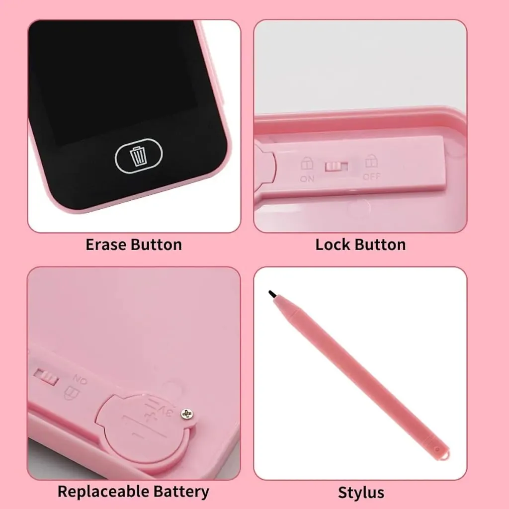 Encourage creativity with the Pink LCD Writing Tablet, a perfect educational drawing board for kids. This portable device features a reusable LCD screen where children can draw, write, or doodle using the included stylus, erasing with a simple button press. Housed in a stylish pink case with storage for multiple styluses, it’s ideal for travel, classroom use, or home activities. Safe, lightweight, and eco-friendly, this tablet helps develop fine motor skills while providing endless entertainment for young learners.