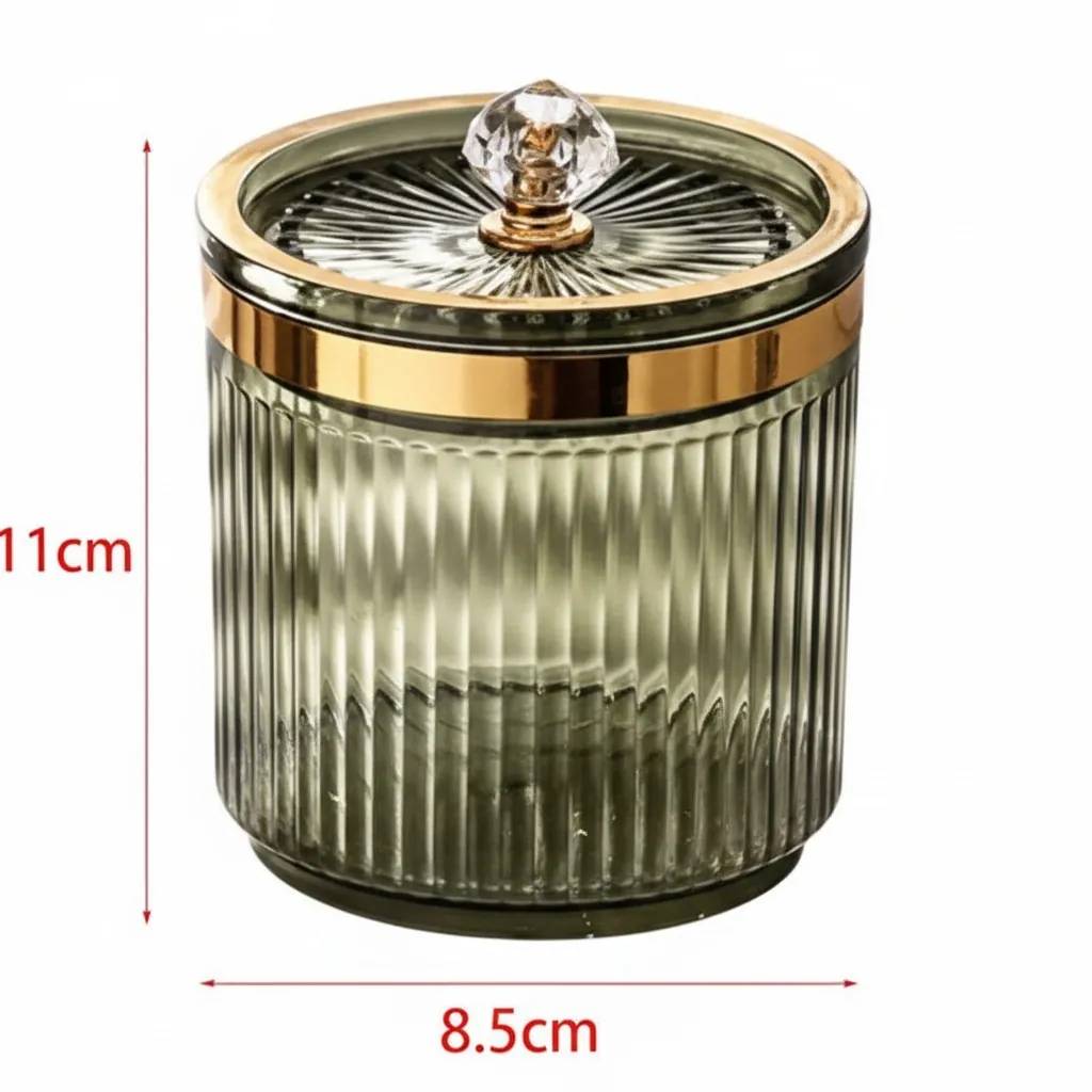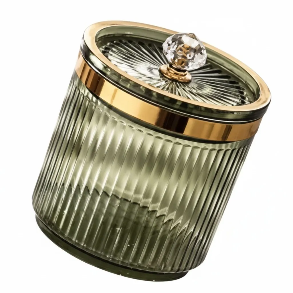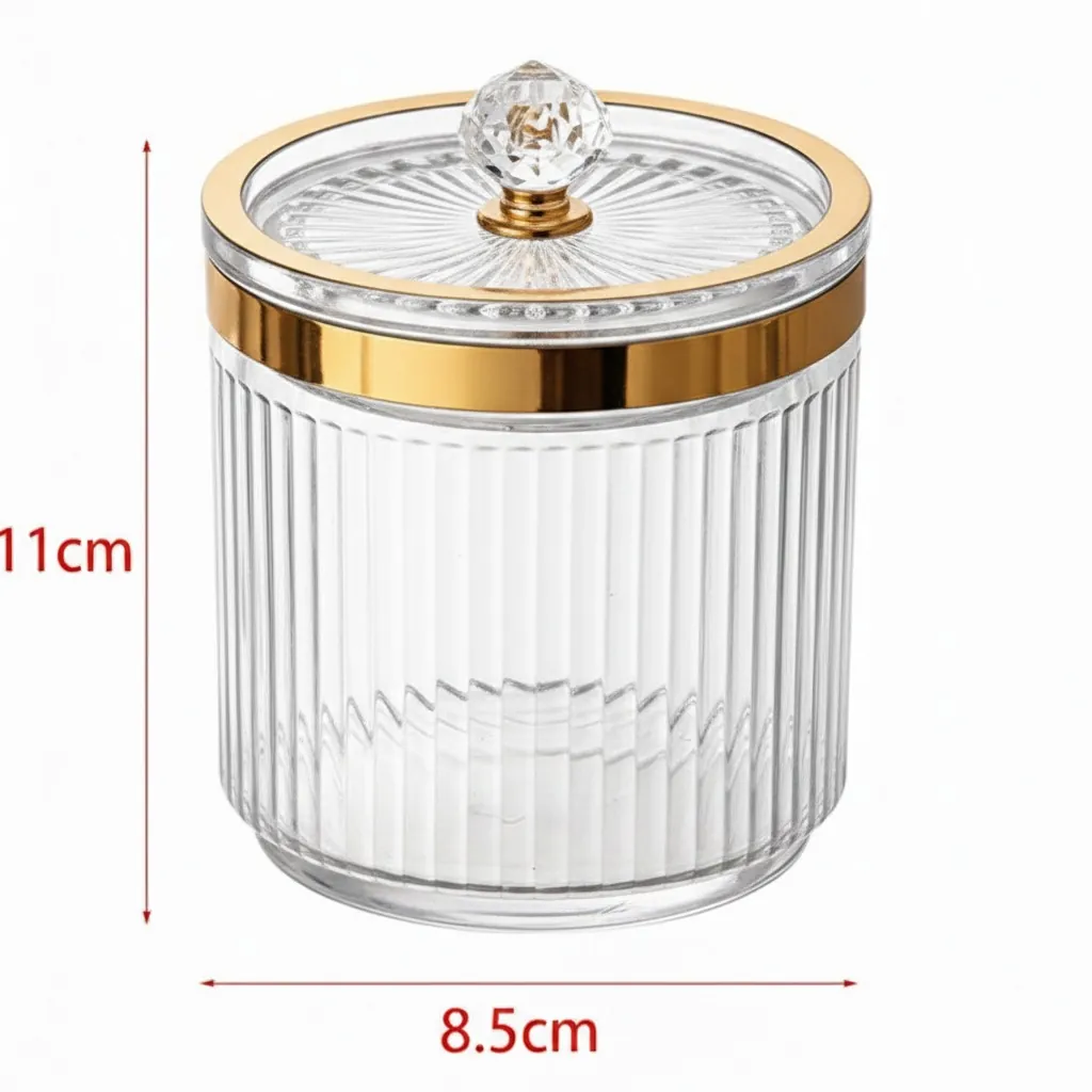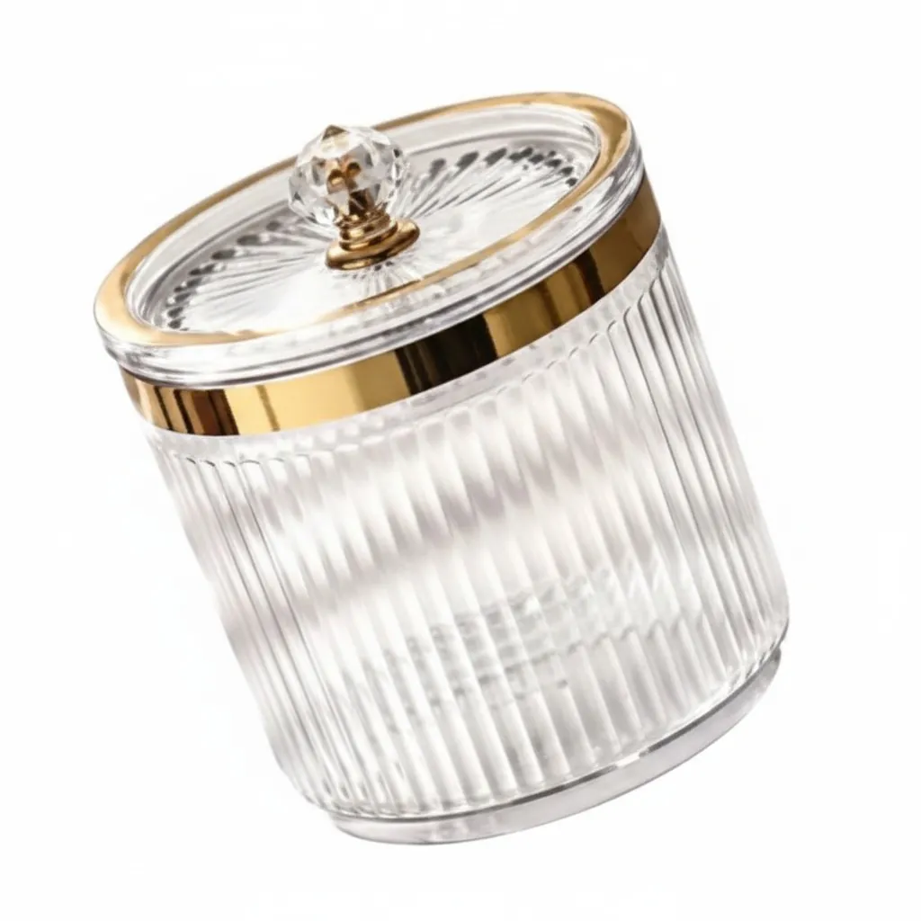 The exclusive design features a vertical ribbed texture that catches the light beautifully, accented by a sophisticated gold band around the rim. The lid is topped with a crystal-like knob for easy handling and includes a convenient notch for the included serving spoon. Whether you are hosting a formal tea party or looking for a daily-use spice jar, this BPA-free pot is the perfect combination of elegance and safety.