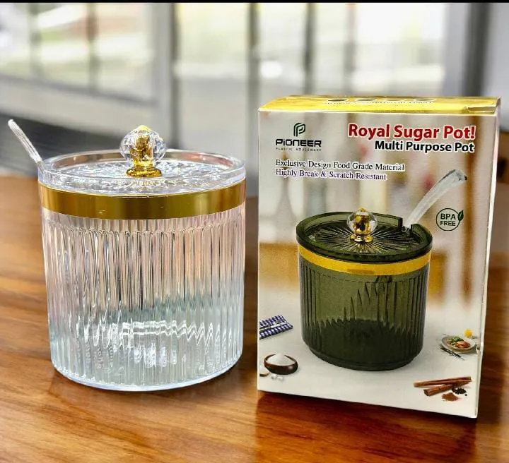 Add a touch of royalty to your home with the Pioneer Royal Sugar Pot! Multi-Purpose Pot. This versatile container is crafted from high-quality, food-grade plastic that mimics the look of fine crystal while offering superior durability. Unlike traditional glass, this pot is highly break and scratch-resistant, ensuring long-lasting use in a busy household.