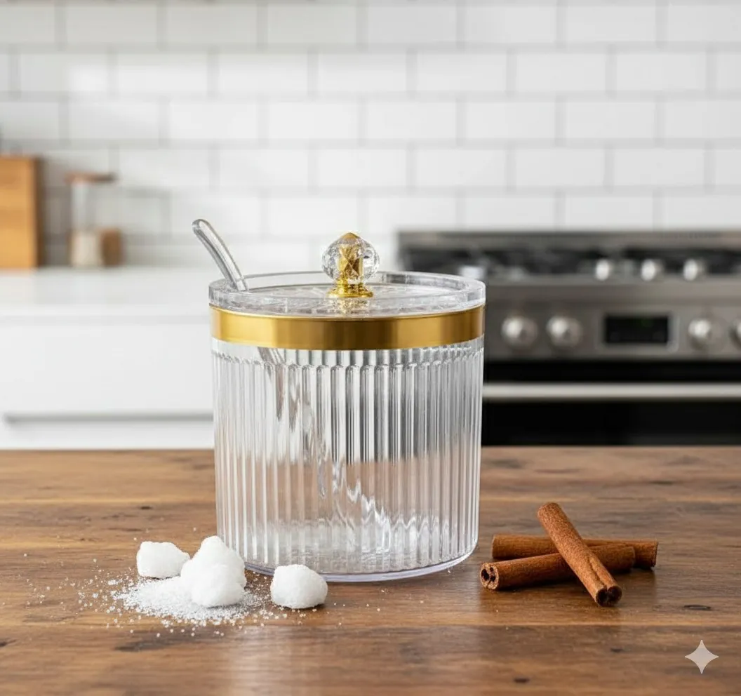 Pioneer Royal Sugar Pot – Multi-Purpose Crystal Acrylic Jar with Spoon
