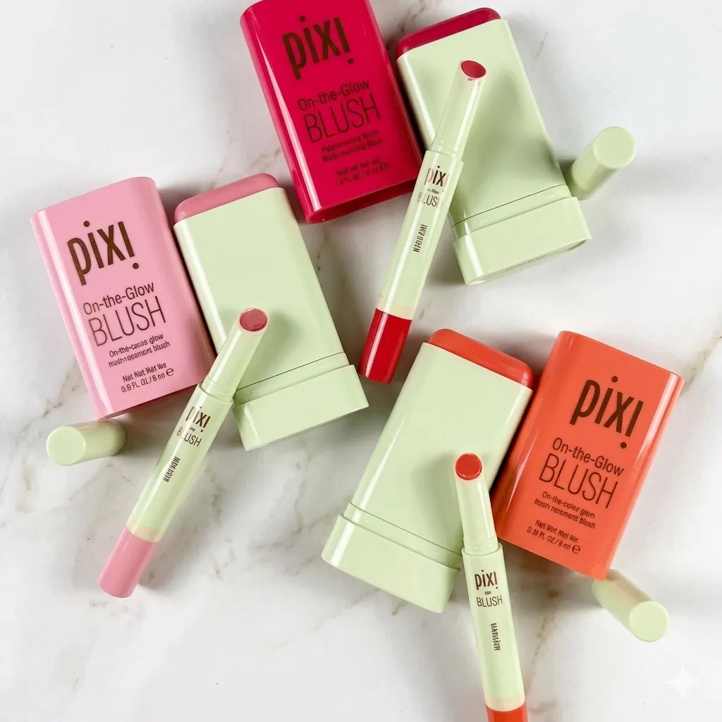 "The Ultimate Pixi On-the-Glow Blush Collection: High-Pigment Swatches, Vibrant Shades, and Luxury Stick Packaging Showcase