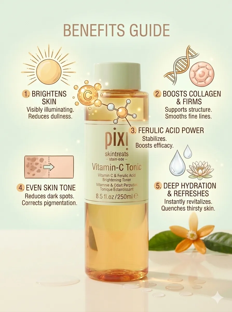 Pixi Vitamin-C Tonic Brightening Facial Toner with Antioxidants & Ferulic Acid