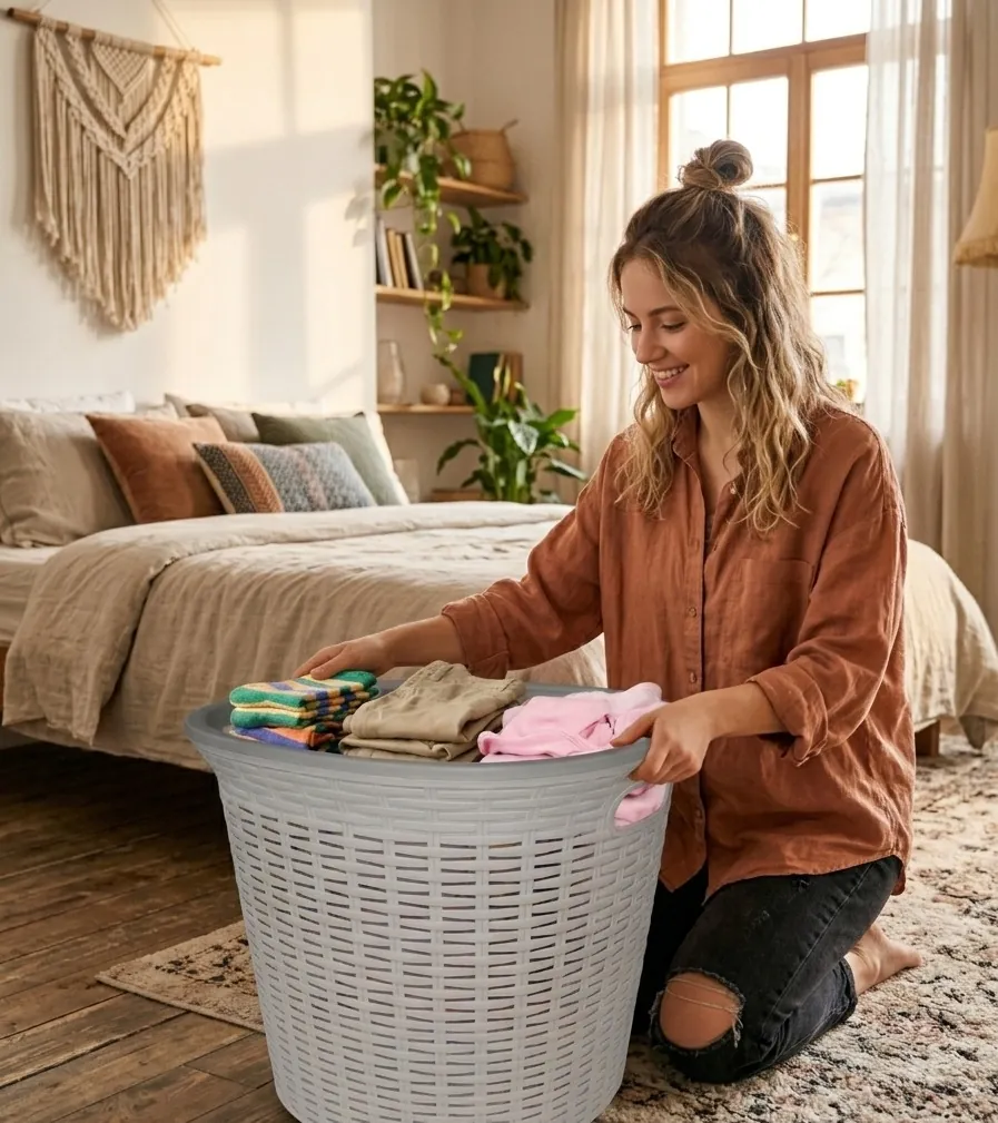 Designed with a classic, clean look, it fits perfectly in any bathroom, laundry room, or bedroom. The strong handles on the sides make it very easy to pick up and carry, even when it is full. It is made from tough, long-lasting plastic that is easy to clean and will not break easily. This versatile bucket is the simplest way to keep your clothes off the floor and your room looking neat.