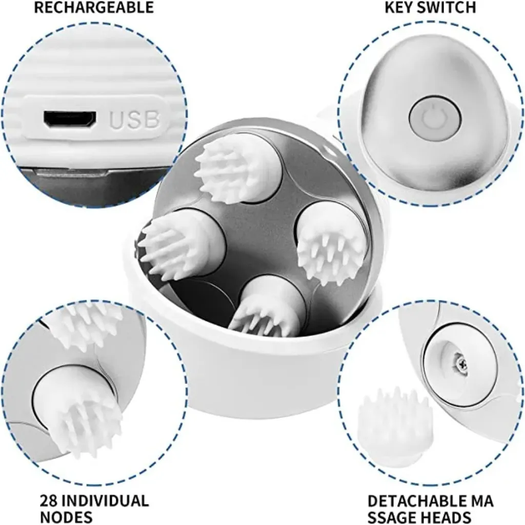 Unwind and rejuvenate with the Portable Electric Head Massager, a sleek device crafted to provide soothing scalp relaxation. Featuring multiple soft silicone nodes, this massager stimulates blood circulation, reduces stress, and promotes hair health with gentle vibrations. Its ergonomic, lightweight design fits comfortably in hand, making it perfect for home use, office breaks, or travel. Easy to operate with a simple on/off switch, it’s an ideal tool for relieving tension headaches and enhancing relaxation. The durable construction ensures long-lasting use, offering a spa-like experience in the comfort of your own space.