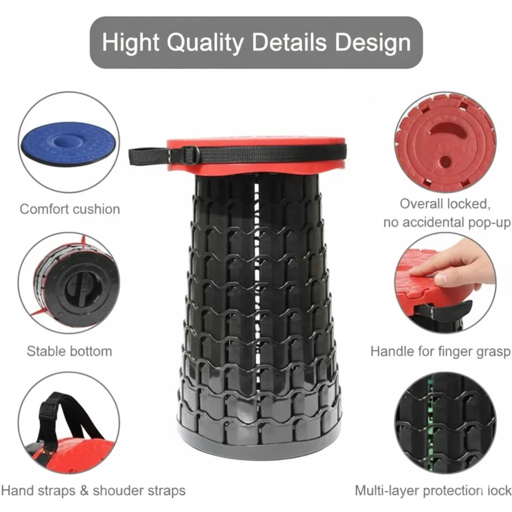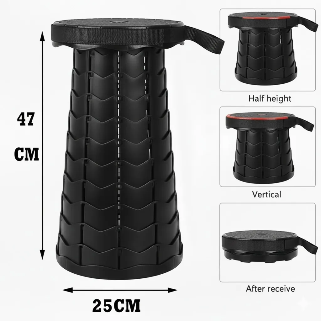 Discover the ultimate companion for your outdoor adventures with our Portable Folding Extension Stool. Designed for versatility and ease of use, this retractable telescopic stool is a must-have for campers, hikers, fishermen, gardeners, and anyone needing a quick, sturdy seat on the go.