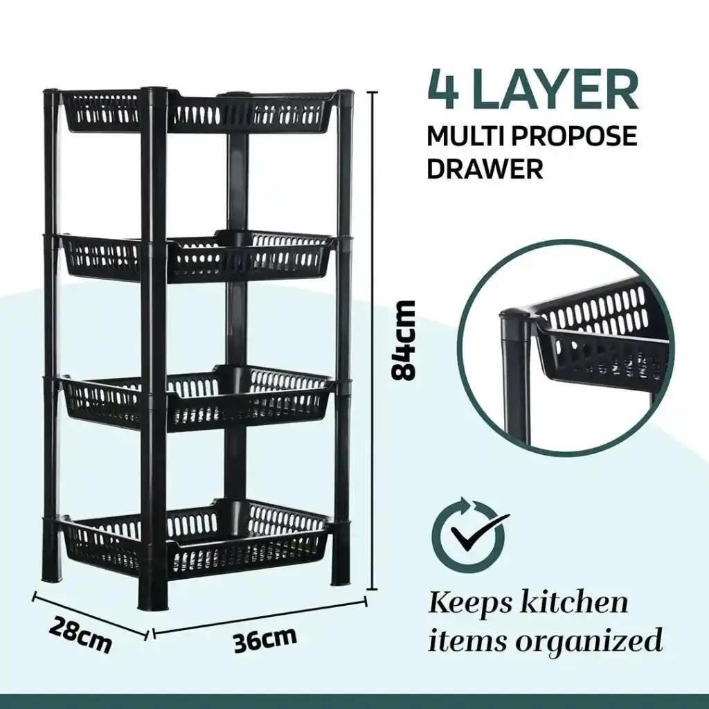 Keep your kitchen neat and clutter-free with the Portable Multi-Layer Kitchen Shelf Trolley, designed for both convenience and durability. Crafted from premium-quality metal, this sturdy storage rack offers multiple layers of shelving to store utensils, fruits, vegetables, bottles, jars, and more.