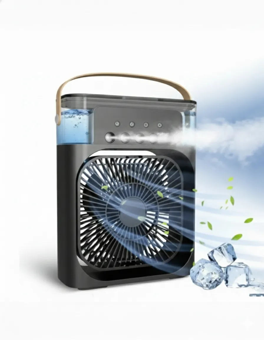 Experience personalized cooling with this versatile and portable air cooler. Designed for convenience, it combines the power of a fan with the refreshing mist of a humidifier, helping to alleviate dryness and create a more comfortable environment. The built-in water tank is easily refillable, and the unit features intuitive controls for fan speed and misting. Adding to its utility, it includes a soft LED night light, perfect for bedside use or to create a calming ambiance. Its compact size and integrated carry handle make it effortlessly portable, allowing you to enjoy a cool breeze wherever you go. Ideal for home, office, or travel.
