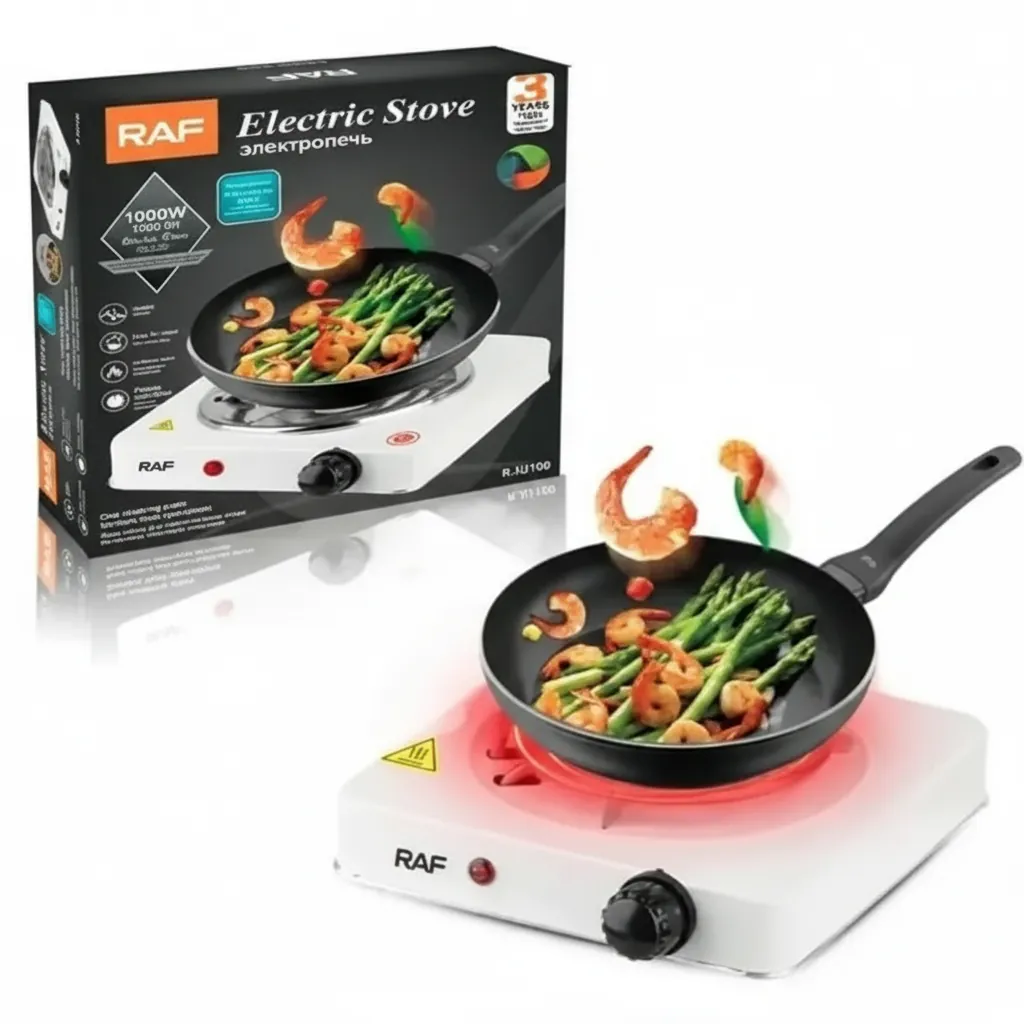 The RAF single burner electric stove offers a convenient and portable cooking solution for small spaces or as an additional cooking element. This white model features a single heating plate with adjustable temperature control, allowing you to cook a variety of dishes. Its compact and lightweight design makes it easy to move and store. Indicator lights show when the stove is in operation. Enjoy simple and efficient cooking with this practical RAF electric hot plate.