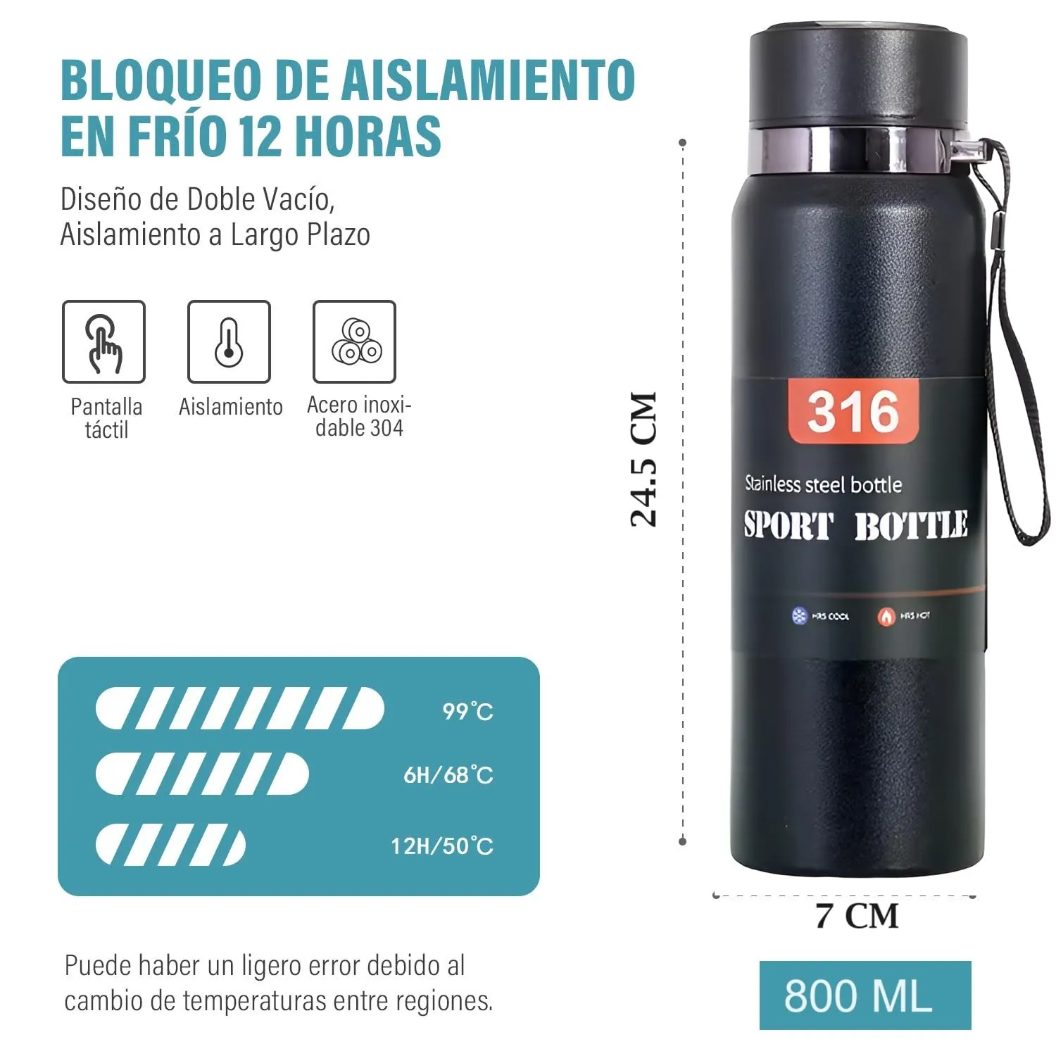 Portable Smart Stainless Steel Water Bottle- high-quality stainless steel, 800ML bottle features vacuum insulation-hot for up to 12 hours and cold for up to 24 hours