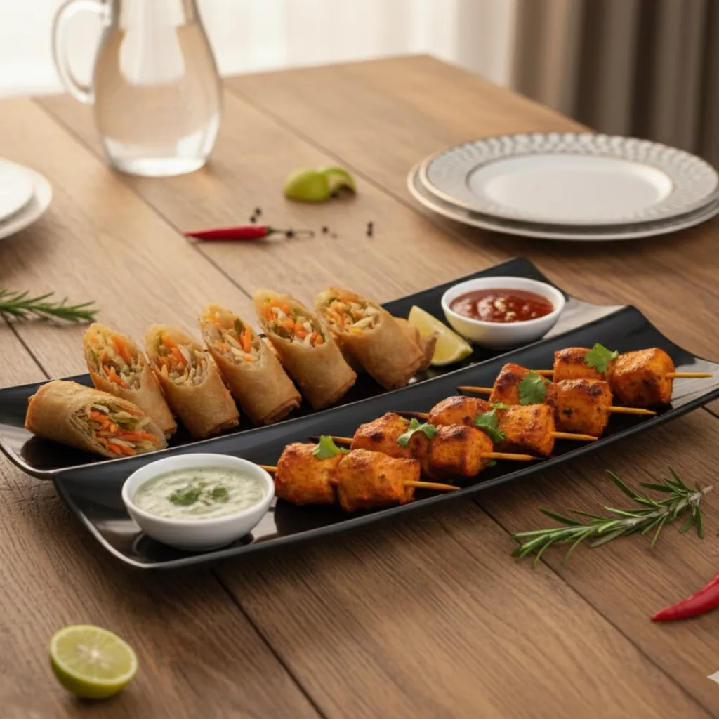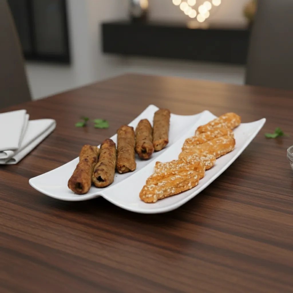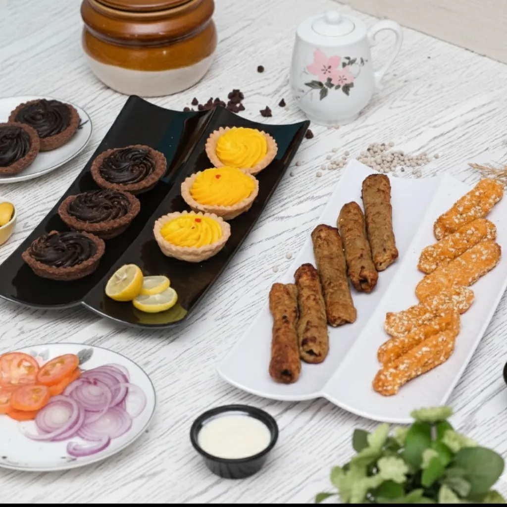 The sleek and stylish design enhances table presentation, while the smooth surface makes it easy to wash and maintain. Whether you are serving BBQ kababs, appetizers, or snacks, this dual-section platter adds convenience and elegance to your tableware collection.