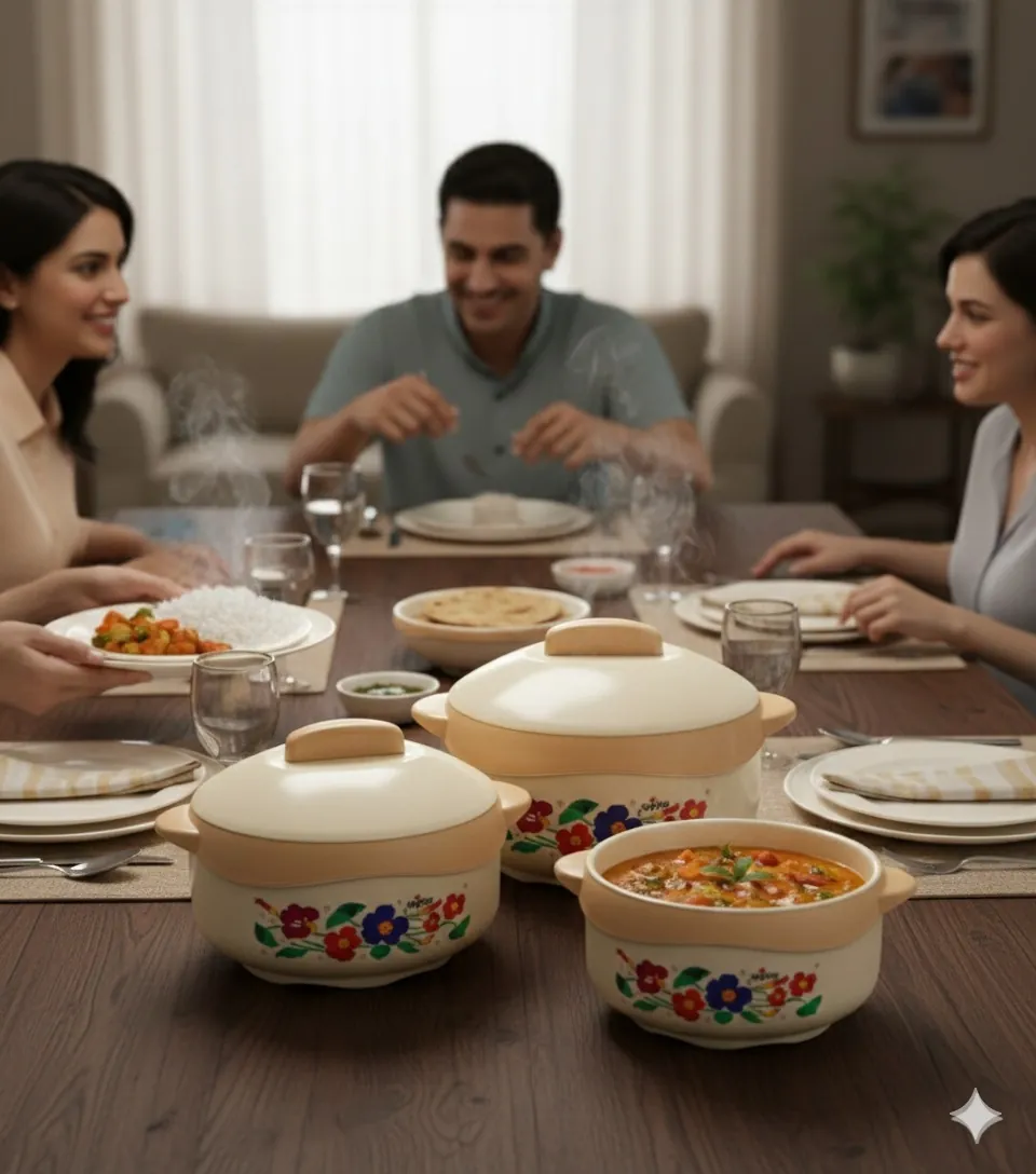 Whether you are hosting a family dinner or heading out for a picnic, these containers ensure your food stays at the perfect temperature for up to 4–6 hours. The twist-lock lids provide an airtight seal to lock in moisture, aroma, and nutrients. With three versatile sizes, you can easily serve everything from hot chapatis and steamed rice to chilled salads and desserts.