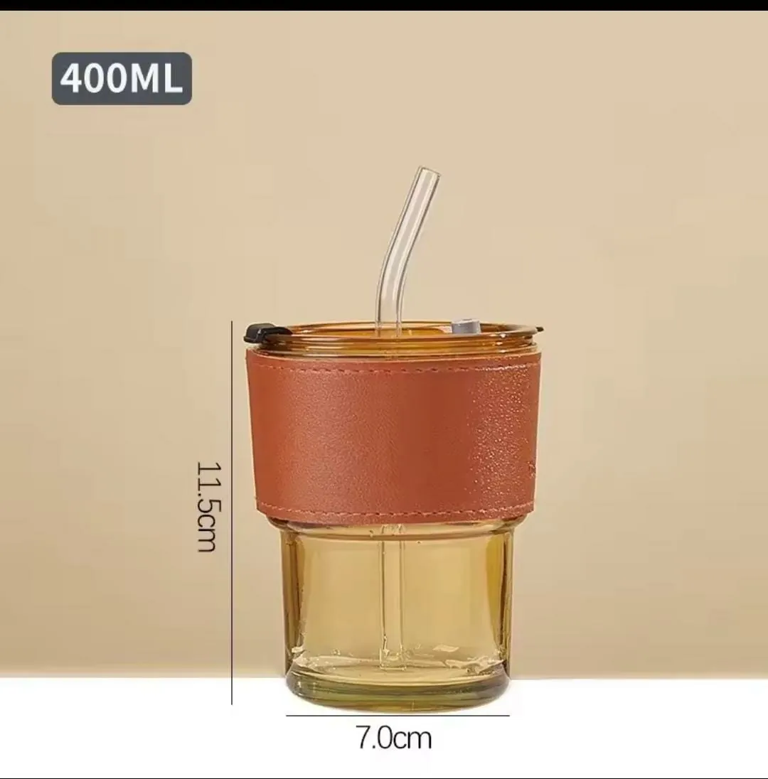 Add sophistication to your drinkware collection with the Approx 400ml Glass Coffee Mug, designed for both style and comfort. Made from premium-quality, heat-resistant transparent glass, it comes with a luxurious leather strap handle for a comfortable grip and a white reusable glass straw for eco-friendly sipping.