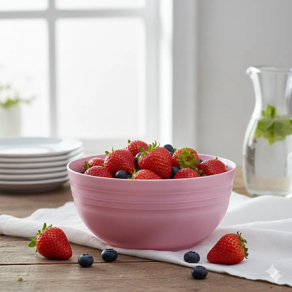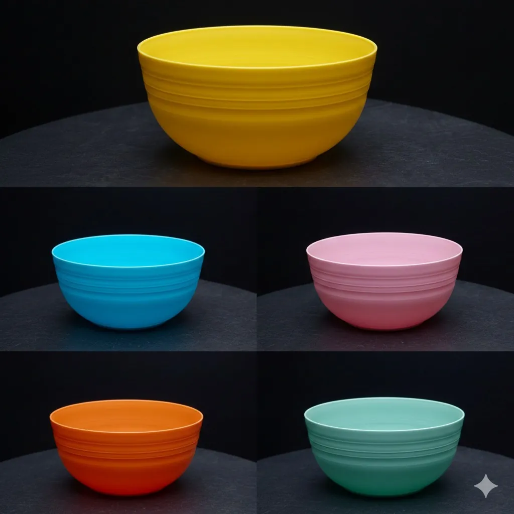 Whether you're whisking eggs, tossing a fresh garden salad, or serving movie-night popcorn, this set provides the perfect size for every task. The space-saving nesting design allows all five bowls to stack neatly inside one another, keeping your kitchen cabinets clutter-free. Crafted from high-quality, impact-resistant plastic, they are built to withstand daily use while remaining lightweight and easy to handle.