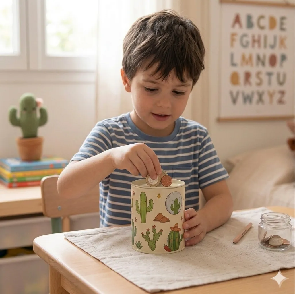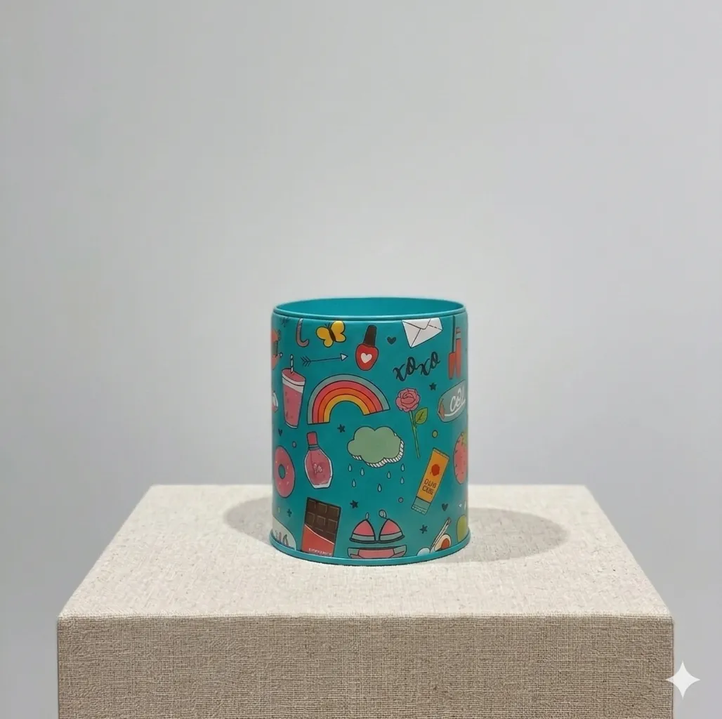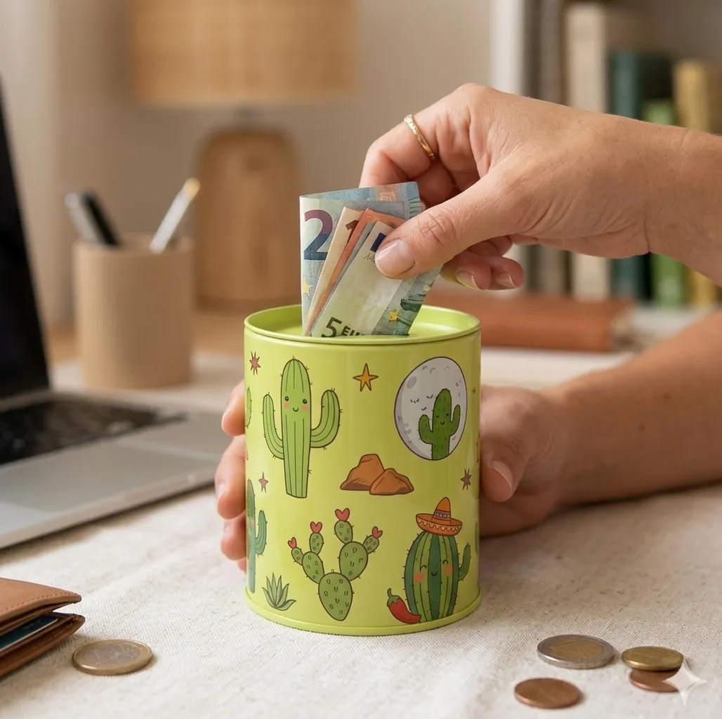 Premium Decorative Round Tin Money Box / Piggy Bank – Kids & Adults Coin Saving BankTransform the way you save with our Premium Round Tin Money Box, a perfect blend of artistic flair and practical utility. Designed for those who appreciate both style and substance, this money box serves as an excellent motivational tool for children and a chic desk accessory for adults. Unlike traditional plastic piggy banks that wear out or ceramic ones that shatter easily, our money box is constructed from high-density reinforced tinplate, ensuring it stays part of your journey for years to come.The exterior is wrapped in high-definition, wrap-around graphics featuring trendy motifs—from minimalist cacti to whimsical rainbows—making it a standout piece in any modern interior. It is specifically designed without a bottom plug to encourage "True Saving"; by making the contents less accessible, it helps children (and even adults!) resist the temptation to dip into their savings before their goal is reached. Whether you are saving for a new toy, a travel fund, or just organizing your loose change, this cylinder bank provides a secure, stylish, and unbreakable vault for your hard-earned money.