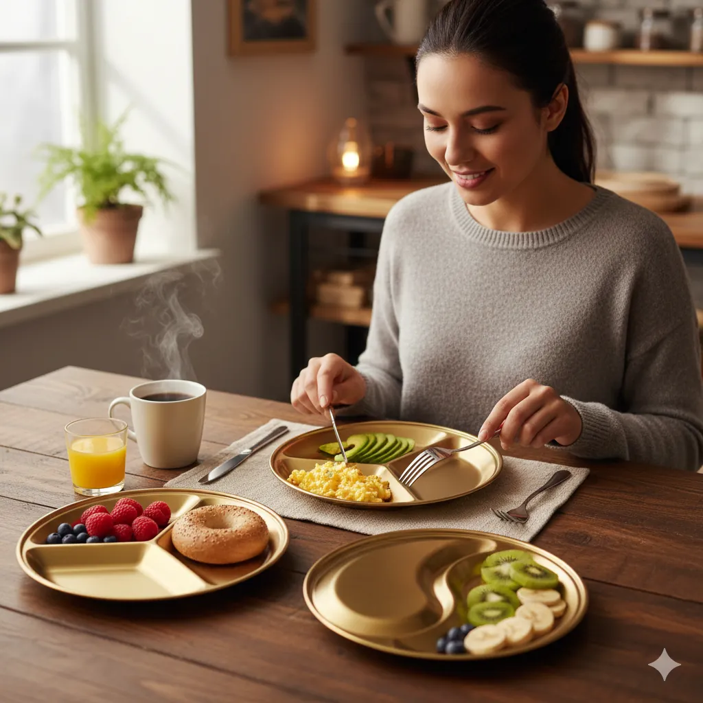 Premium Golden 2-in-1 Divided Serving Trays – Luxury Metallic Round Snack Platters.Elevate your serving game with our Luxury Golden Divided Tray Set. These round platters are designed for the modern home, blending functionality with a high-end aesthetic. Each set includes two distinct designs: a classic three-way split and a stylish "S-curve" dual divider, allowing you to separate different snacks, appetizers, or sauces beautifully.Crafted with a high-quality metallic finish, these trays offer a brilliant gold sheen that catches the light, making them a centerpiece for any coffee table or dining setup. Beyond the kitchen, their sophisticated look makes them ideal for use as a decorative vanity tray for rings, watches, and accessories. Lightweight yet durable, they are the perfect blend of luxury and utility.