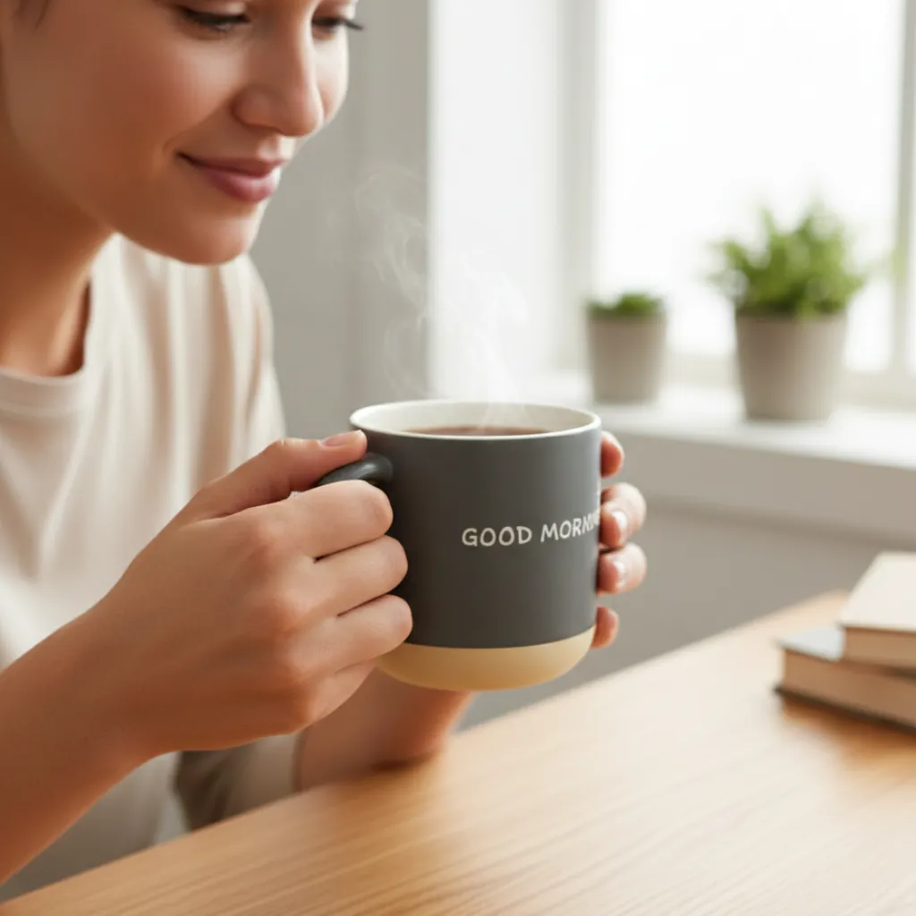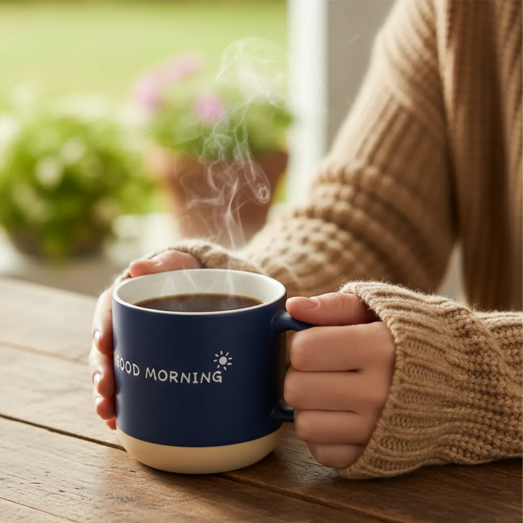 The “Good Morning” text design brings positivity to your day while making it a perfect gift for friends, family, or colleagues. Its comfortable handle ensures a secure grip, while the sturdy ceramic construction keeps your beverages hot for longer.
