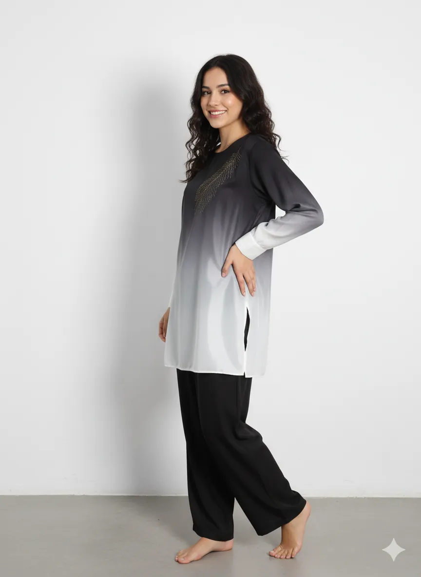 Upgrade your summer wardrobe with this premium stitched 2-piece outfit, crafted from high-quality grip fabric for a lightweight, breathable, and stylish experience. This ensemble features a beautifully printed shirt enhanced with fancy handmade work, adding a touch of elegance and uniqueness to your look. The shirt is tailored in a standard size with neat stitching, comfortable shoulder fitting, and a graceful cut that suits all body types. The matching trouser comes with a flexible waist (relaxed 24” – stretched up to 44”) ensuring comfort without compromising style. Whether you’re dressing up for a casual gathering, festive occasion, or everyday wear, this outfit is designed to give you a chic and graceful look. With its vibrant prints, handmade detailing, and premium quality fabric, this 2-piece set is a must-have for women who value both fashion and craftsmanship.