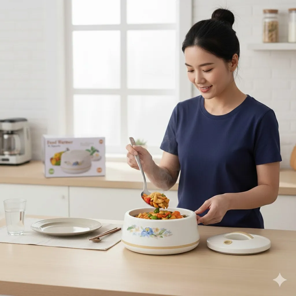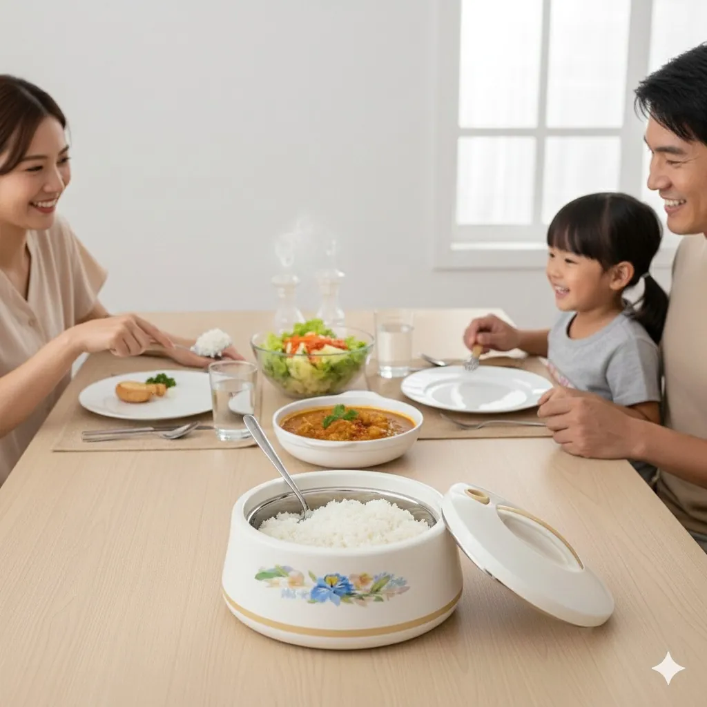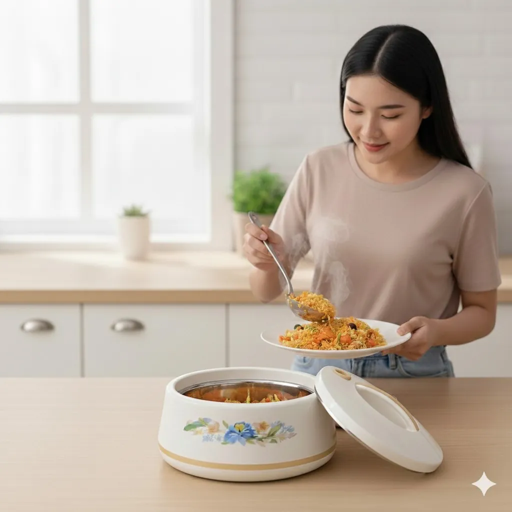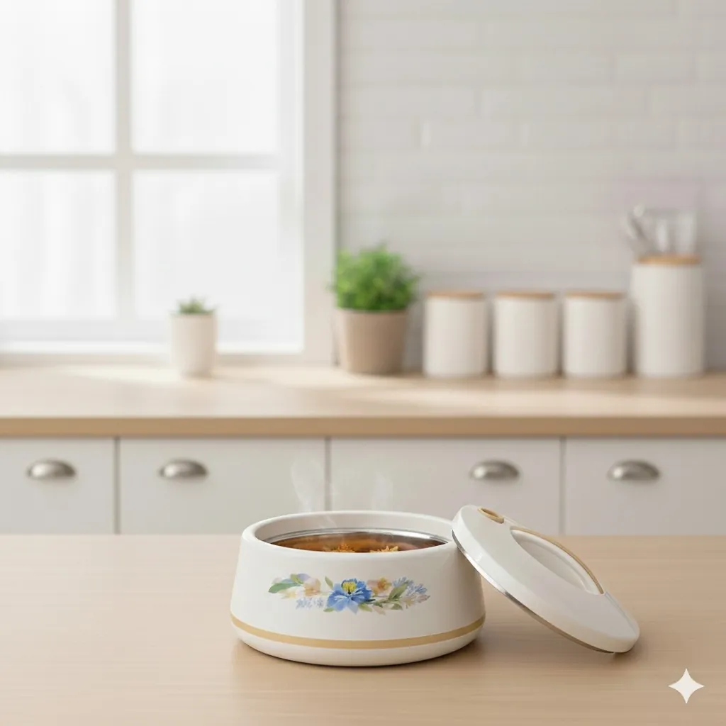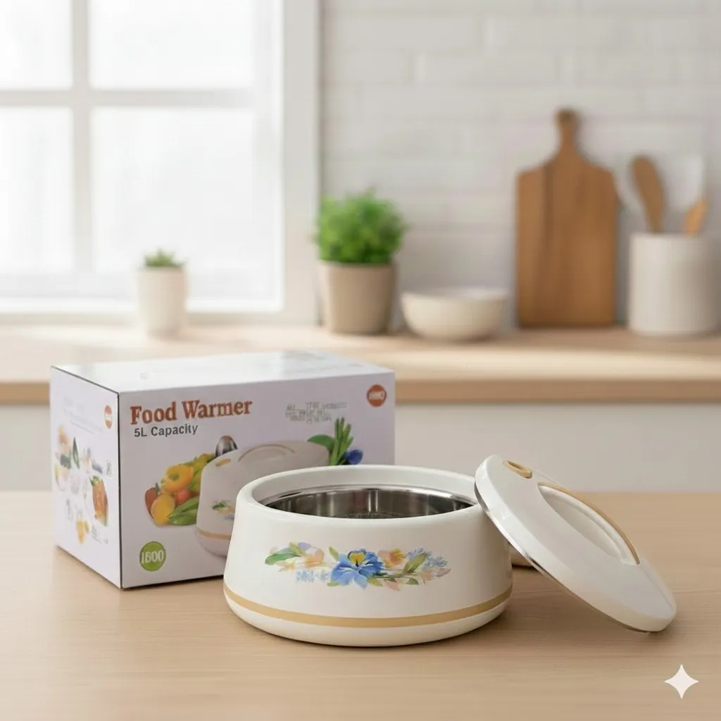 Elevate your dining experience with our Premium Insulated Food Warmer Casserole. Designed for the modern home, this hot pot combines aesthetic floral elegance with superior thermal performance. Whether you are serving fluffy rice, savory curries, or warm tortillas, the double-walled insulation ensures your food maintains its temperature and flavor from the stove to the table. Constructed with a food-grade stainless steel interior, it is easy to clean and resistant to odors. The secure-fit lid traps steam effectively, while the stylish exterior makes it a beautiful centerpiece for any kitchen counter or dining layout. Available in 4-liter, 5-liter, and 6-liter capacities to suit any family size.