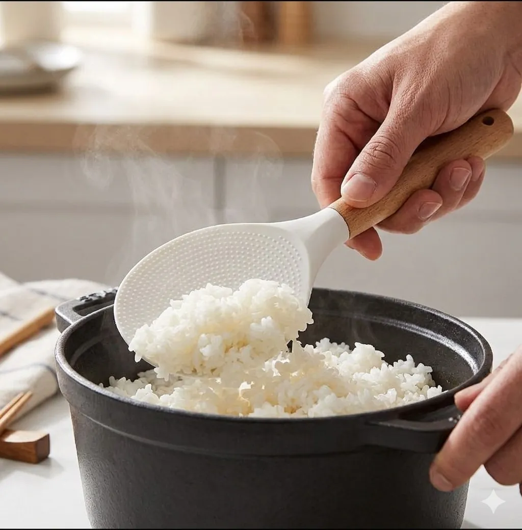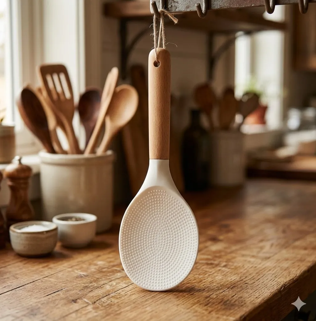 Say goodbye to messy, stuck-on rice with our Professional-Grade Silicone Rice Paddle. This kitchen essential combines modern material technology with a classic aesthetic. The spoon head is crafted from high-quality, food-grade silicone that can withstand high temperatures, making it safer and more durable than traditional plastic paddles.