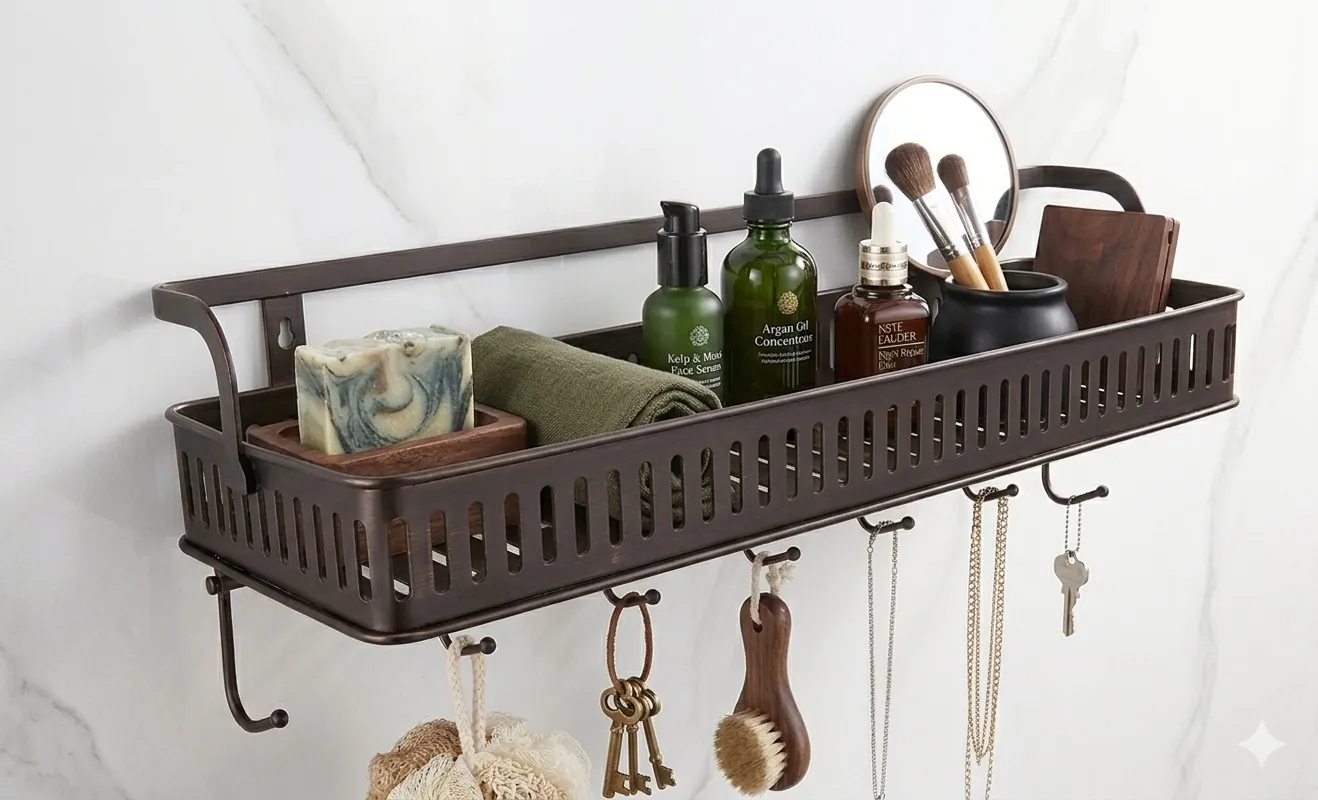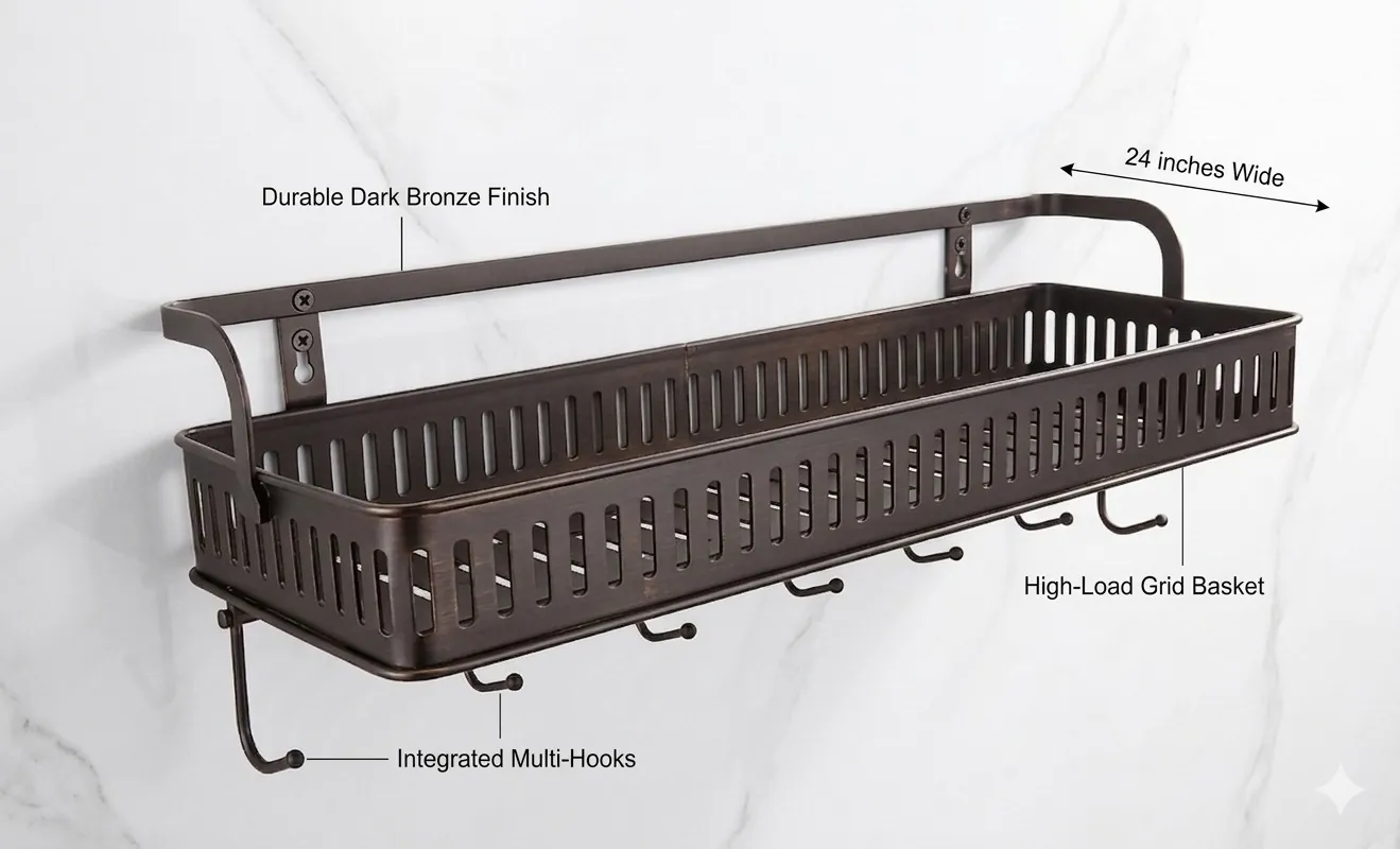 Maximise your space and add a touch of sophisticated industrial charm to your home with our Multi-Purpose Wall-Mounted Storage Organizer. This premium caddy is meticulously finished in a deep oil-rubbed bronze, providing a timeless look that complements both modern and traditional interiors.