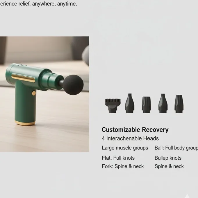 Equipped with 4 interchangeable massage heads, this device targets different muscle groups to reduce stiffness, enhance recovery, and improve circulation.