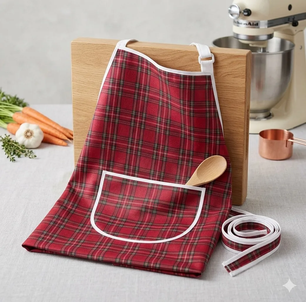 Elevate your culinary presentation with this timeless Red Tartan Plaid Kitchen Apron. Designed for both functionality and aesthetic appeal, this apron features a bold red and green plaid pattern accented by crisp white piping. Crafted from a high-quality, breathable fabric blend, it provides excellent coverage against splashes, flour, and grease.