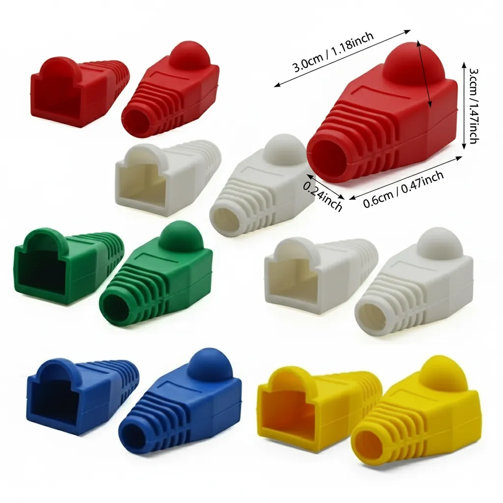 Premium RJ45 Cat5e Cat6 Cat6a Snagless Patch Cable Boots / Connector Covers - LAN Ethernet Plug Strain Relief Protector - PVC Modular Jacket (1000 Pcs) - Multi-Color Pack