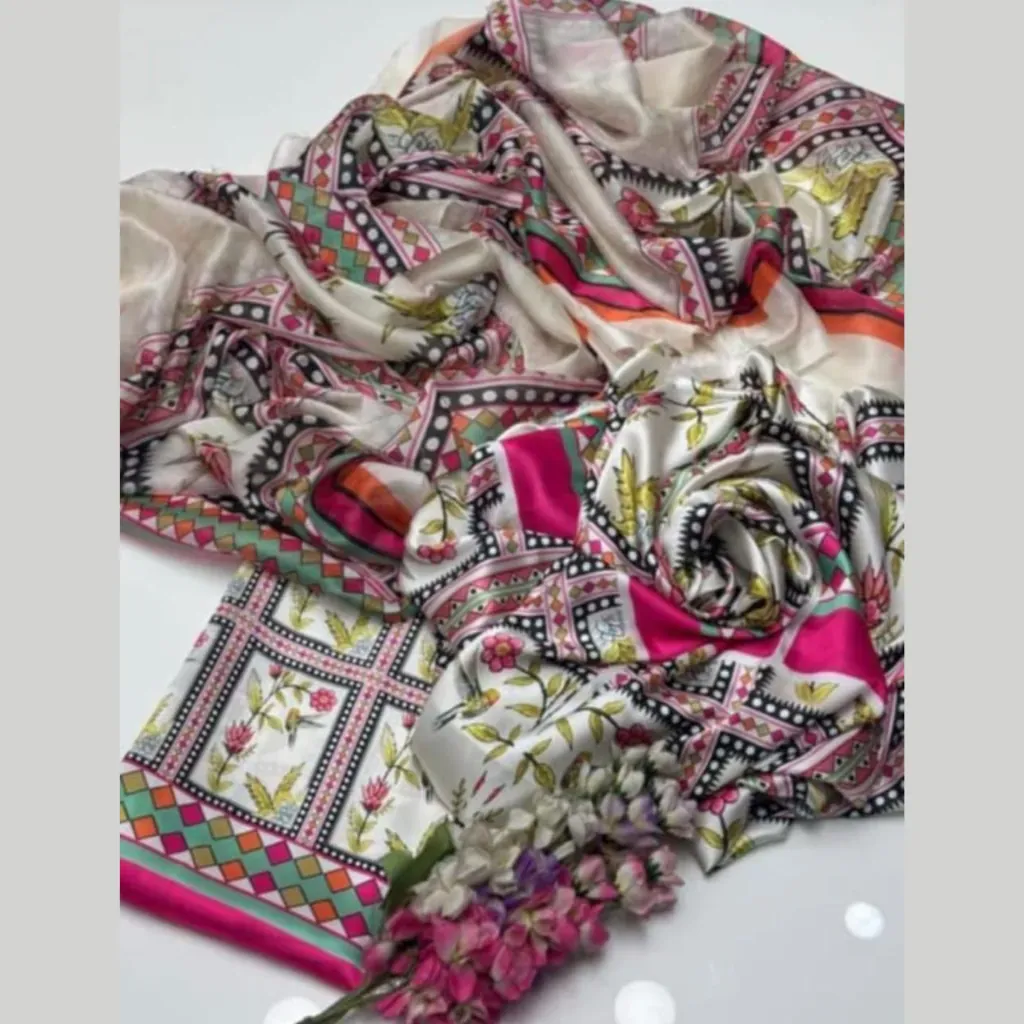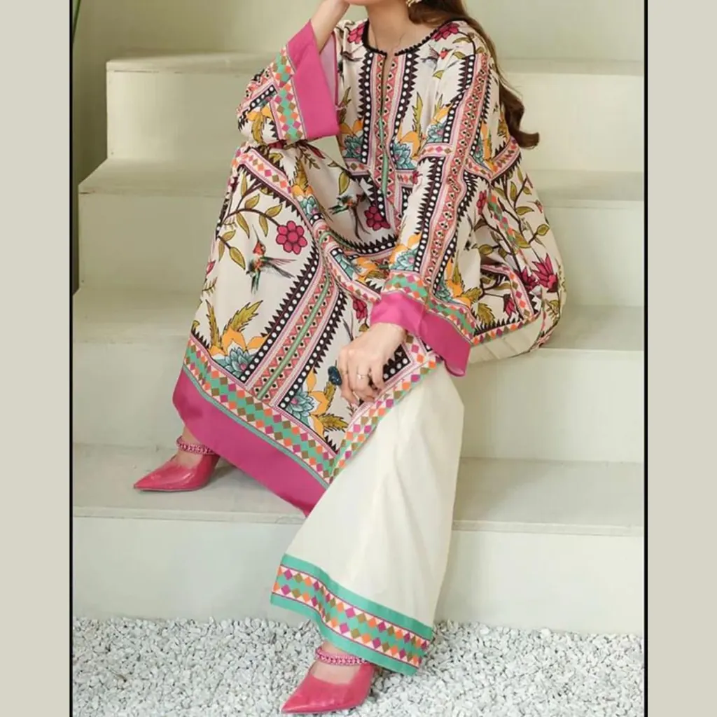 This set includes a printed silk shirt, trouser, and dupatta, giving you a complete outfit that you can stitch according to your own style. Its vibrant prints and soft finish make it a versatile choice for daily wear, office meetings, semi-formal parties, and festive gatherings.