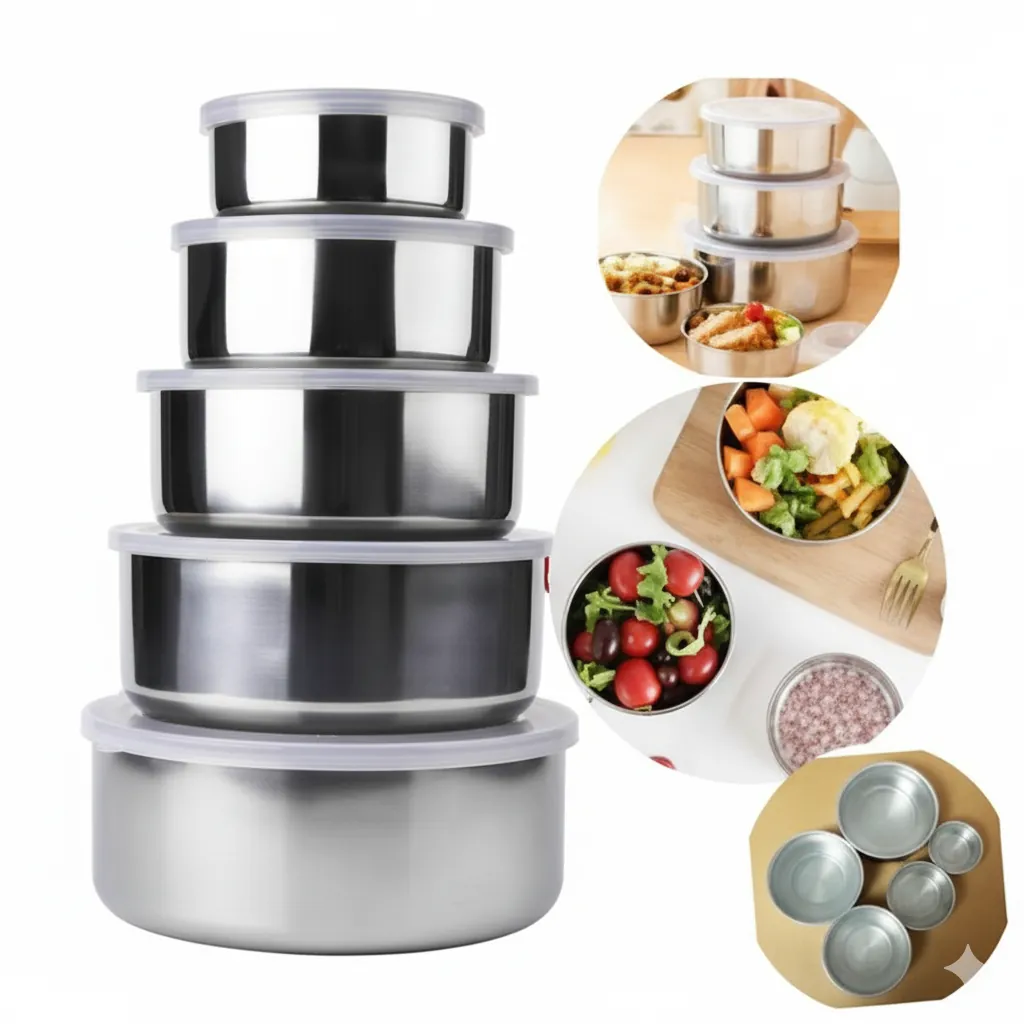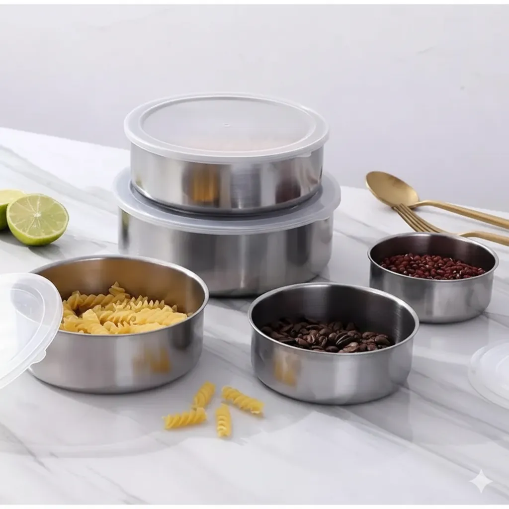 Upgrade your kitchen essentials with this Stainless Steel 5 Pieces Bowl Set, designed for durability and versatility. Made from premium-grade stainless steel, these bowls are resistant to rust, stains, and odor absorption. Ideal for mixing, serving, and food storage, each bowl features a sleek, polished finish and stackable design for easy storage. Perfect for daily meal prep, baking, or serving salads and snacks. Lightweight yet sturdy, this set combines practicality with a modern aesthetic—making it a must-have for every home kitchen. Easy to clean and long-lasting, these bowls deliver both style and performance.